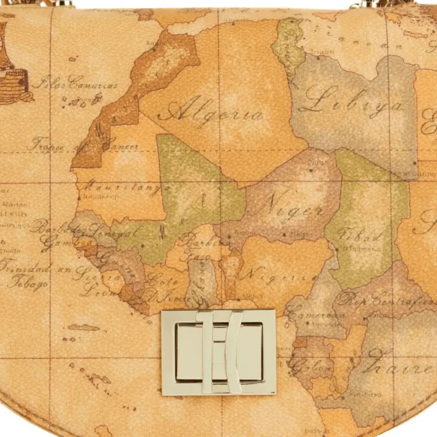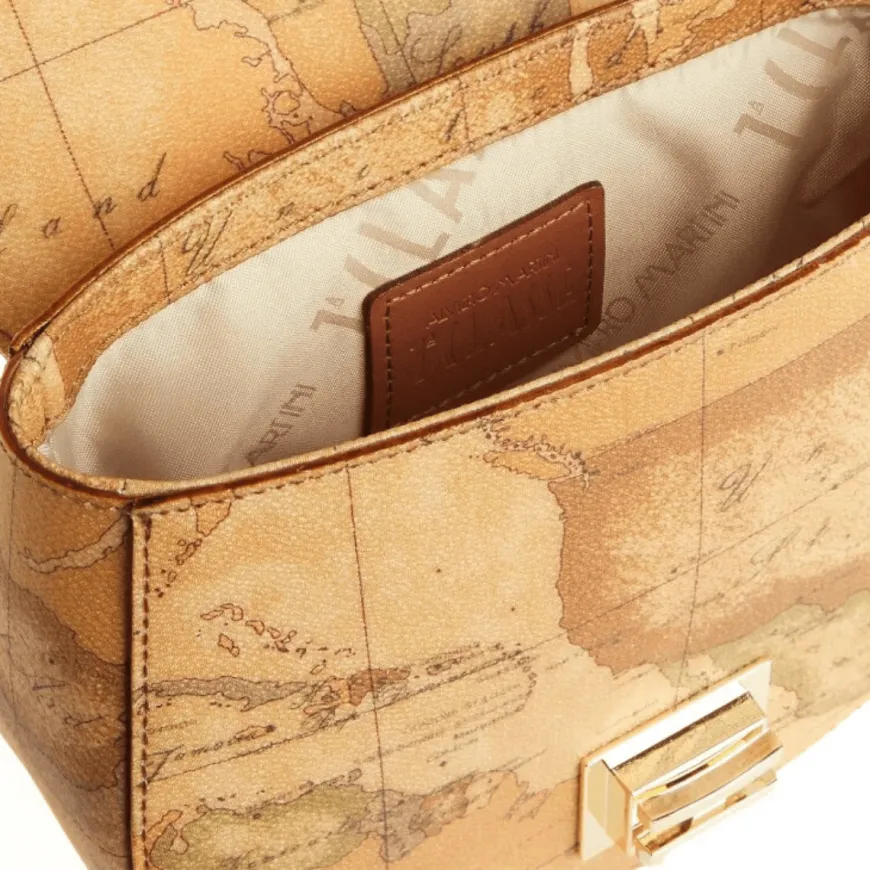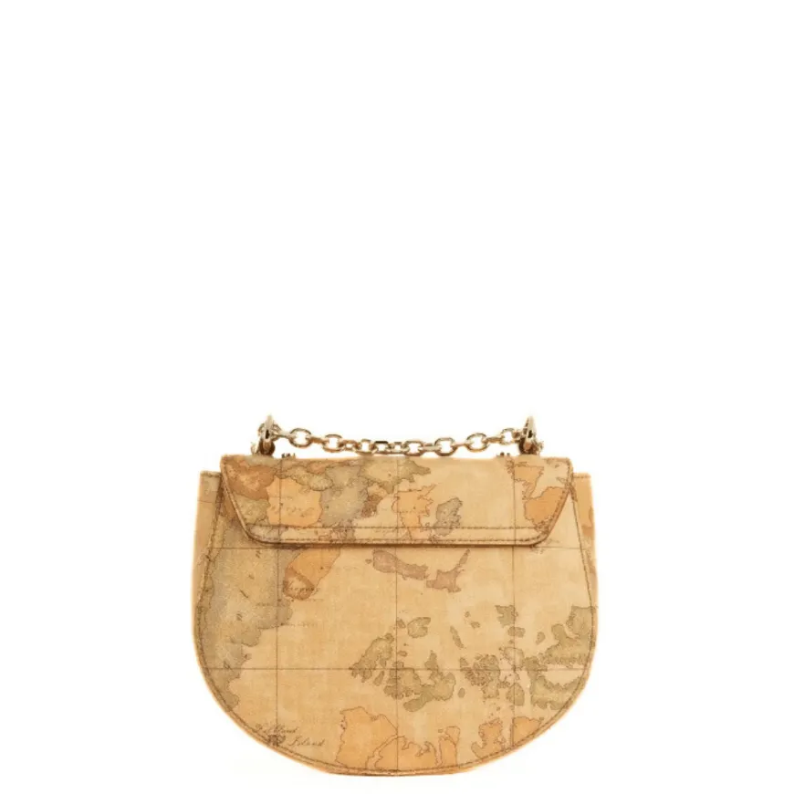 Per elevare l’eleganza del tuo armadio, non può mancare la tracollina tonda in tessuto stampa Geo Classic di Alviero Martini. La catena, accompagnata dalle logate borchiette, dona luce alla borsa, mentre la chiusura a girello logato la rende unica e preziosa.