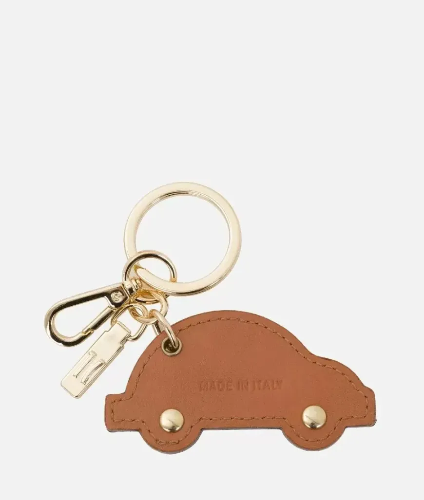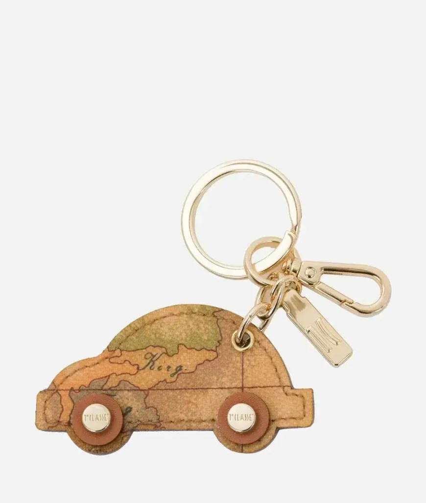 Portachiavi a forma di auto in tessuto goffrato stampa Geo Classic con dettagli in pelle liscia, metalleria in oro chiaro con logo 1AClasse. Una simpatica idea regalo caratterizzata dallo stile Prima Classe.