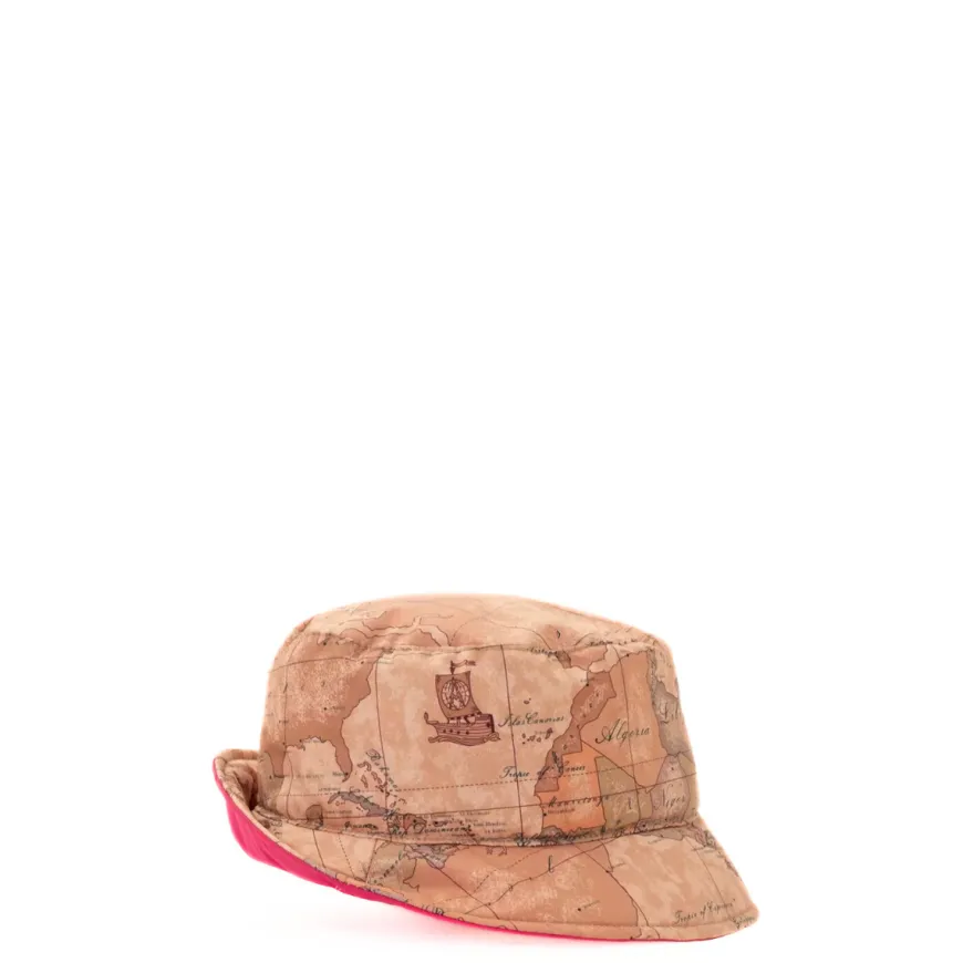 Cappello da donna di ALVIERO MARTINI 1^CLASSE realizzato in tessuto geo classic con interno fuxia.