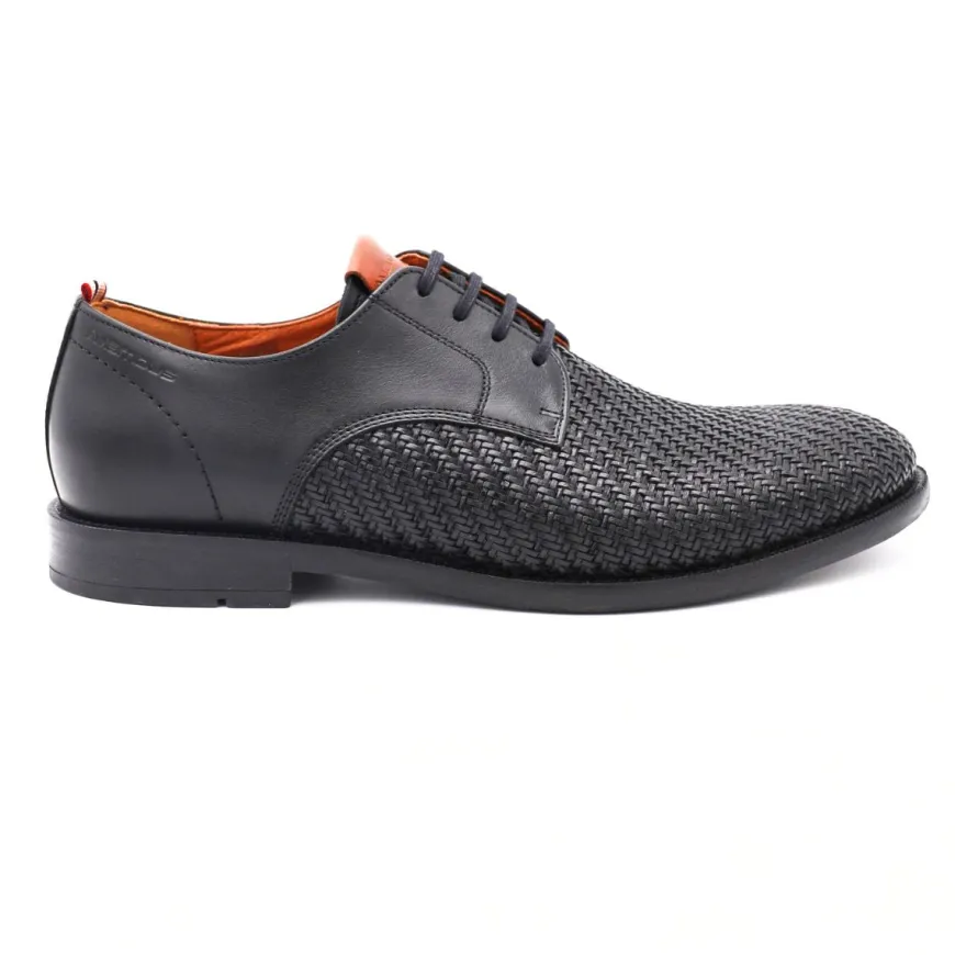 Elegante derby di Ambitious con tomaia in pelle nera effetto intrecciato. Leggera suola in materiale termoplastico e fodera in morbida pelle, sottopiede anatomico. Uno stile casual con un tocco esclusivo. Chiusura con laccio.