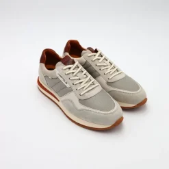 Sneakers running da uomo di AMBITIOUS. Tomaia realizzata in tessuto grigio con inserti in camoscio e pelle grigio, tallone con inserto in pelle cuoio. Interno foderato in pelle con sottopiede estraibile. Chiusura con lacci, laccio di ricambio in dotazione. Suola sportiva in gomma.