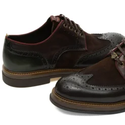 Stringata da uomo di AMITIOUS, realizzata in pelle marrone con inserti in camoscio e punta all’inglese. Interno in pelle e sottopiede, anatomico e ed estraibile, in materiale tecnico traspirante. Suola in gomma bicolore.