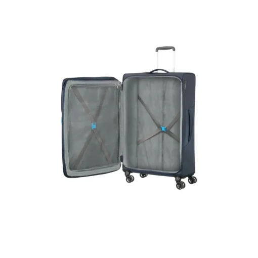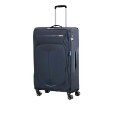 Trolley grande morbido, della linea SUMMERFUNK di AMERICAN TOURISTER dal design unico e avanzate tecnologie color blu. Realizzato in tessuto. Interno con unica tasca foderata e tasca in rete per accessori. Chiusura con combinazione e sistema TSA. Quattro ruote bidirezionali . Carrello bitubo. Valigia espandibile.