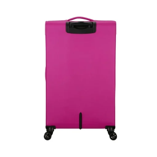 Trolley grande morbido, della linea SEA SEEKER di AMERICAN TOURISTER dal design unico fuxia con profilo verde acqua. Realizzato in Poliestere. Interno con unica tasca foderata e tasca in rete per accessori. Chiusura con combinazione e sistema TSA. Quattro ruote bidirezionali. Carrello bitubo.