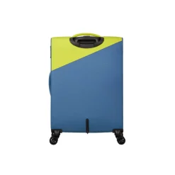 Bagaglio medio morbido, della linea DARING DASH di AMERICAN TOURISTER dal design unico color lime e avio. Realizzato in tessuto. Interno con unica tasca foderata e tasca in rete per accessori. Tasca esterna con zip. Chiusura con combinazione e sistema TSA. Quattro ruote bidirezionali. Carrello bitubo. Espansione.