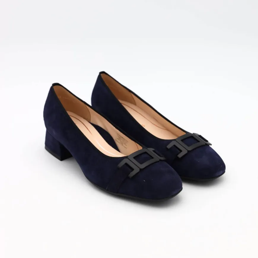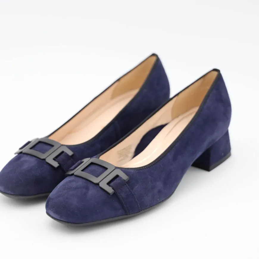 Aggiungi un tocco di eleganza al tuo guardaroba con le dècolletè ARA in morbida pelle scamosciata blu, con catena nera. L’interno foderato in pelle soffice e il sottopiede high soft anatomico garantiscono comfort e traspirabilità. Il tacco rivestito in pelle blu conferisce un tocco di esclusività, mentre la suola in gomma flessibile e antiscivolo assicura stabilità.