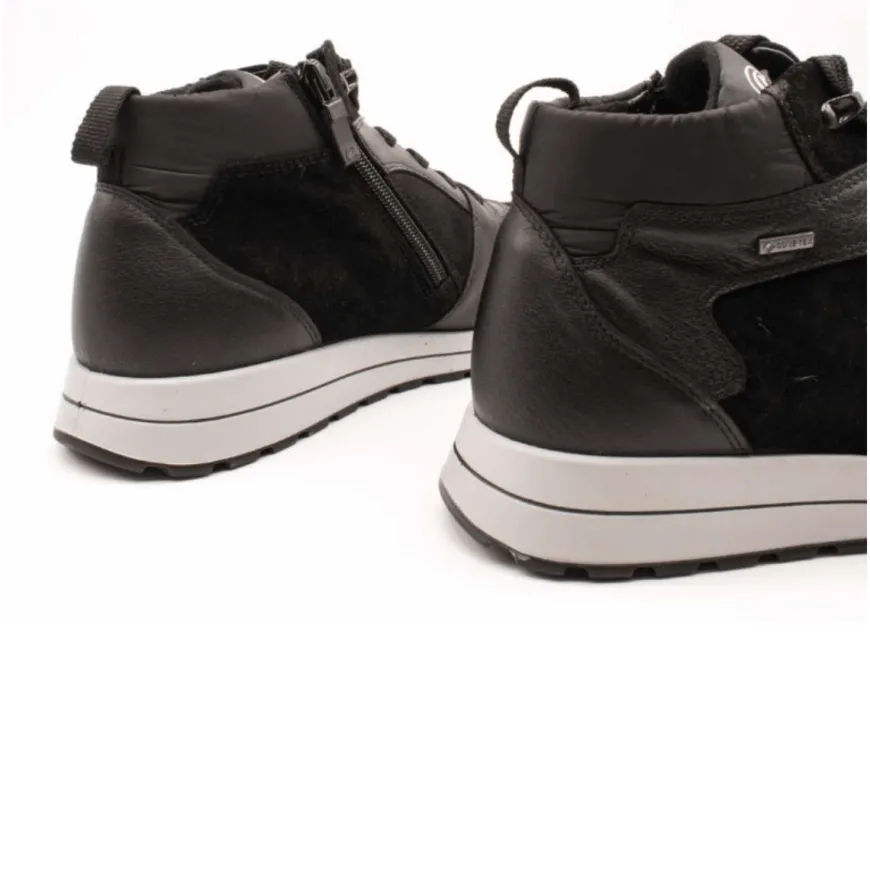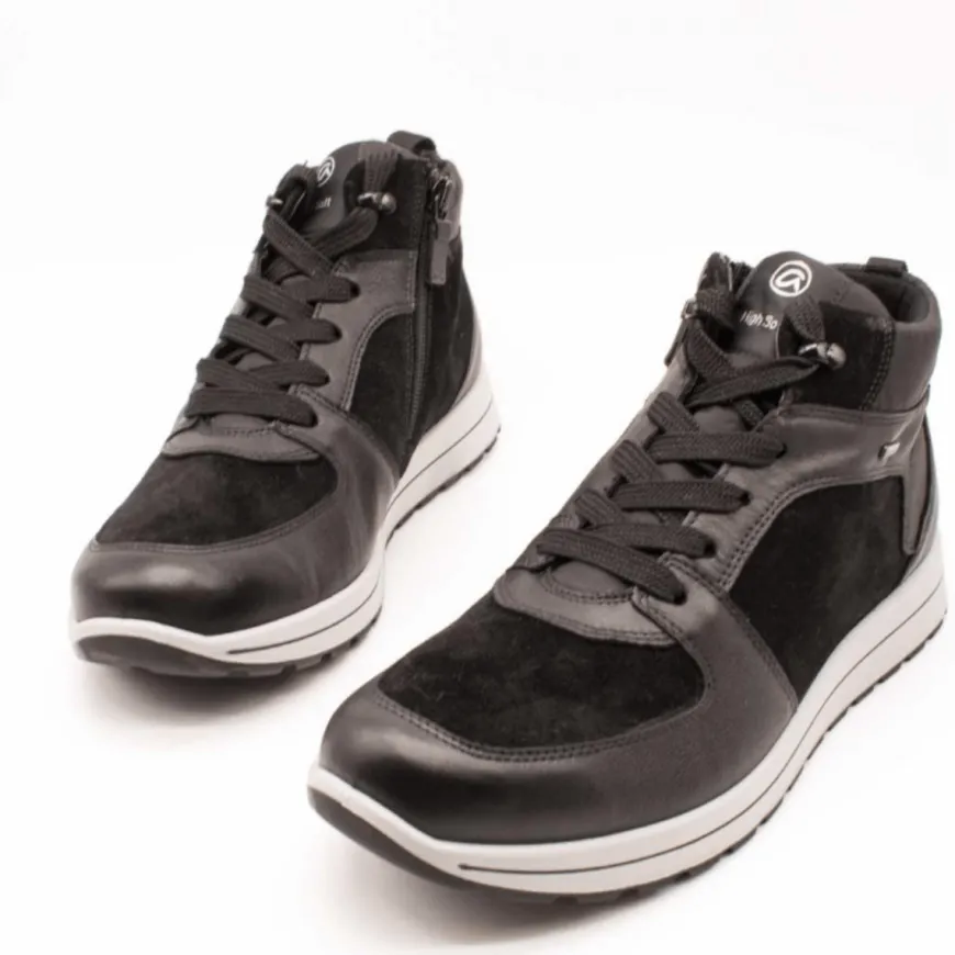 Sneakers alta casual da uomo di ARA. Tomaia in pelle e camoscio nero, zip unilaterale. Interno foderato in pelle con sottopiede morbido estraibile. Chiusura con lacci. Suola in gomma.