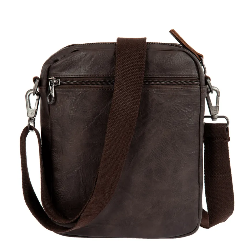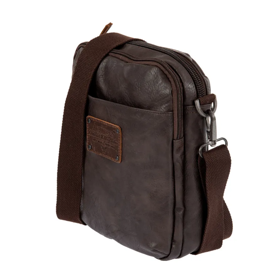 Borsello da uomo di AVIREX realizzato in ecopelle marrone. Interno unico comparto con tasche accessorie. Tracolla in tessuto marrone regolabile. Chiusura con cerniera.