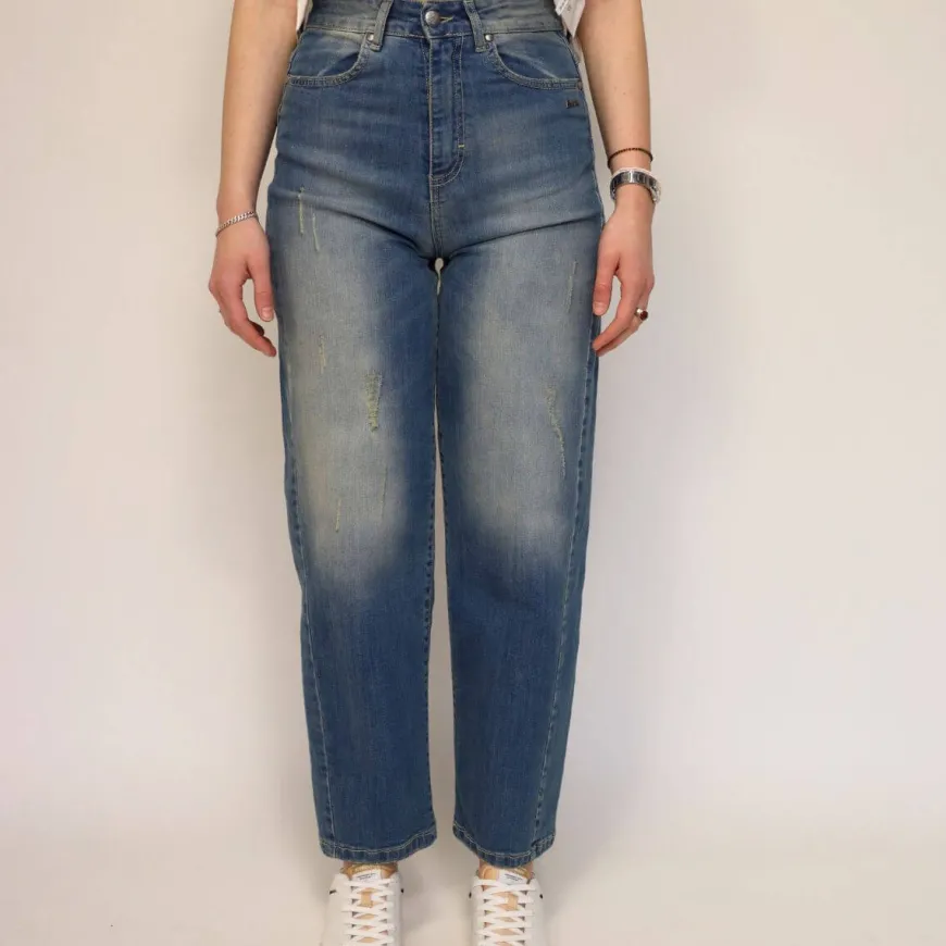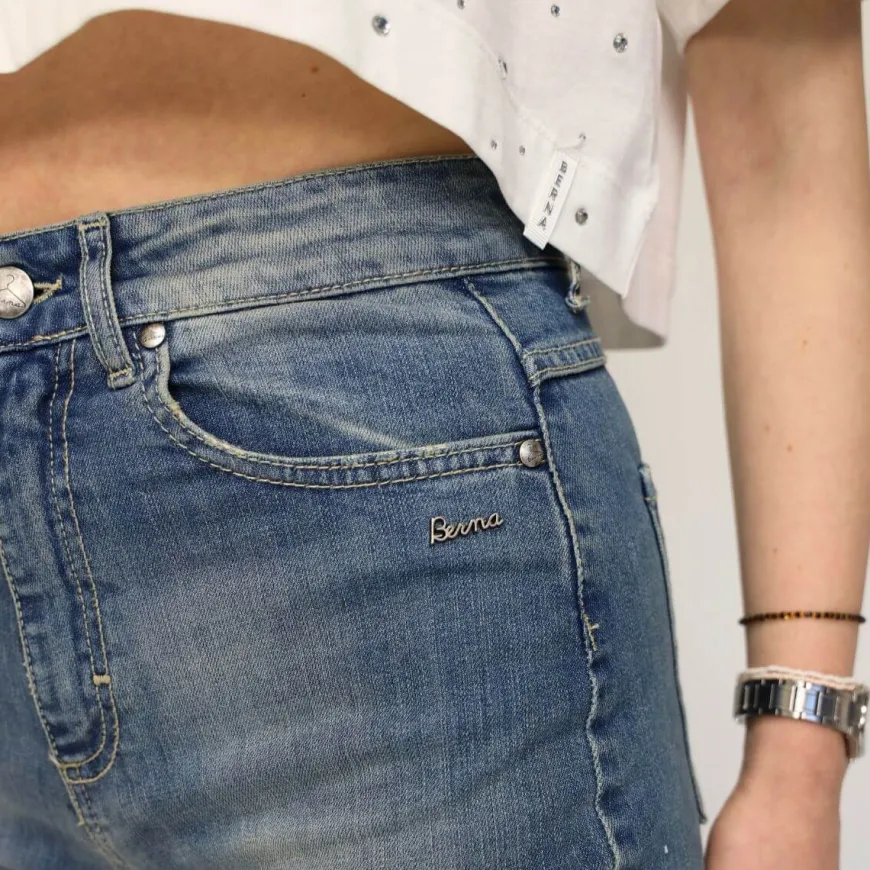 Jeans egg-fit da donna di BERNA, realizzato in color jeans effetto slavato.