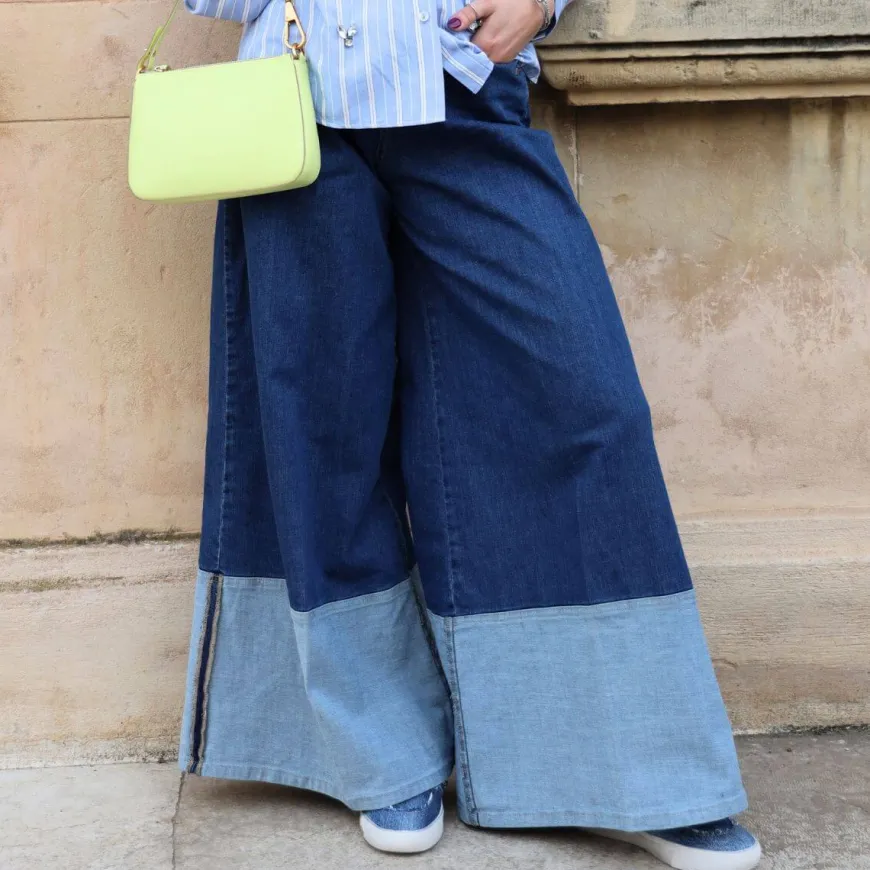 Pantagonna da donna di BERNA realizzato in denim scuro con risvolto in contrasto chiaro. Chiusura con cottone e zip.