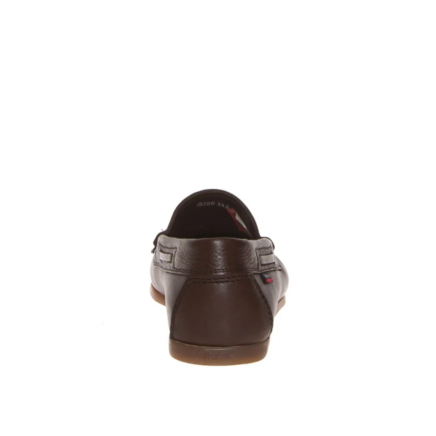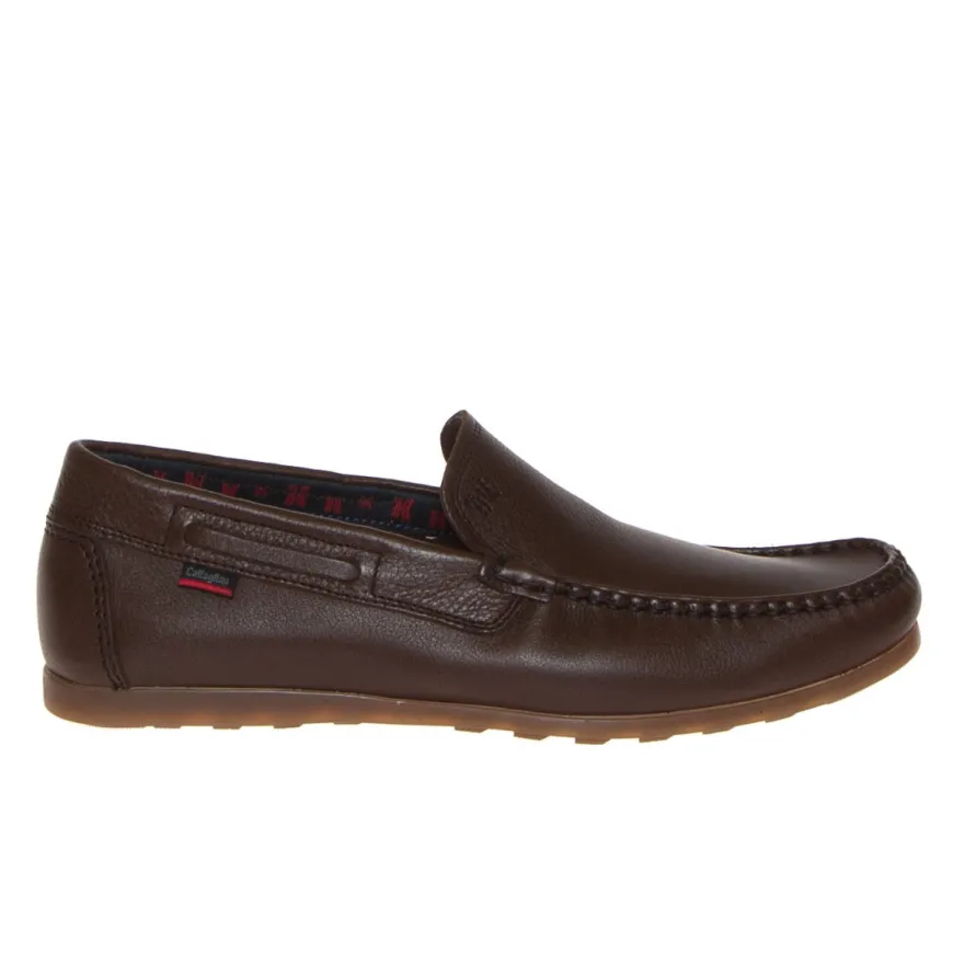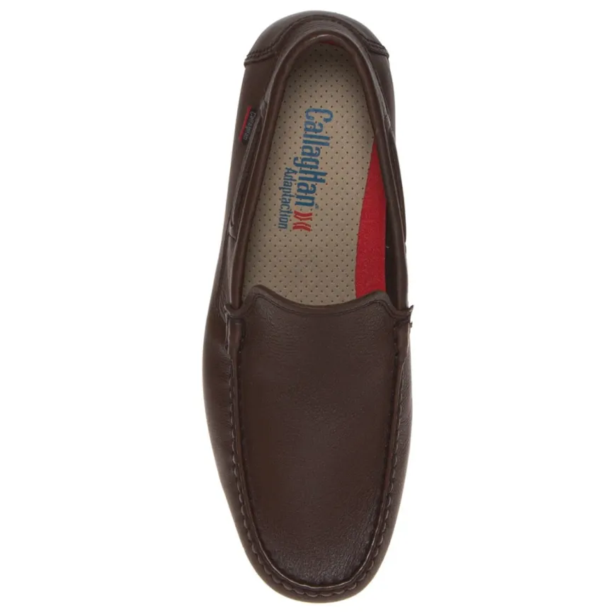 Fresco mocassino casual, in pelle pieno fiore marrone, di CALLAGHAN. Internamente sfoderata e con morbido plantare sagomato estraibile. Suola in gomma antiscivolo, tacco 1.5 cm.