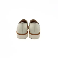 Mocassino da donna di CINZIA VALLE, realizzato in pelle bianca con frange e morsetto oro. Interno e sottopiede in pelle. Suola in gomma extralight.