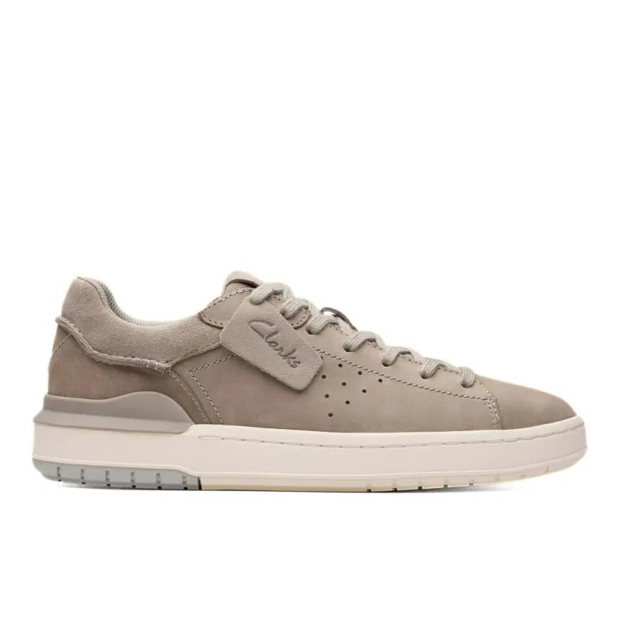 Sneaker da uomo di CLARKS. Tomaia in morbida pelle grigia, con dettagli in camoscio grigio, internamente foderata in tessuto. Suola a cassetta in gomma leggera, saldata alla tomaia tramite cucitura.