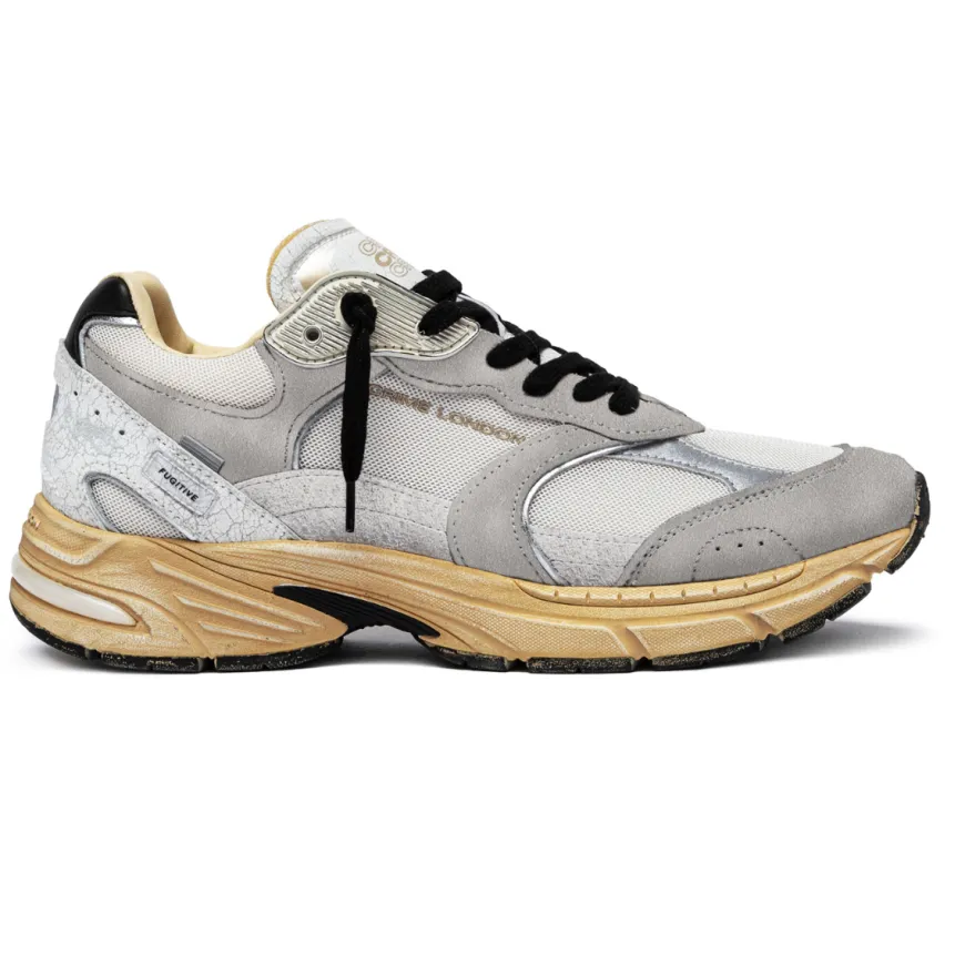 Sneakers di CRIME LONDON realizzate in tessuto, arricchite da inserti in camoscio e pelle, con effetto craccato sul tallone e sulla linguetta. Interno foderato in tessuto e pelle. Sottopiede estraibile, in pelle. Chiusura con laccio. Suola in gomma con battistrada stile running.