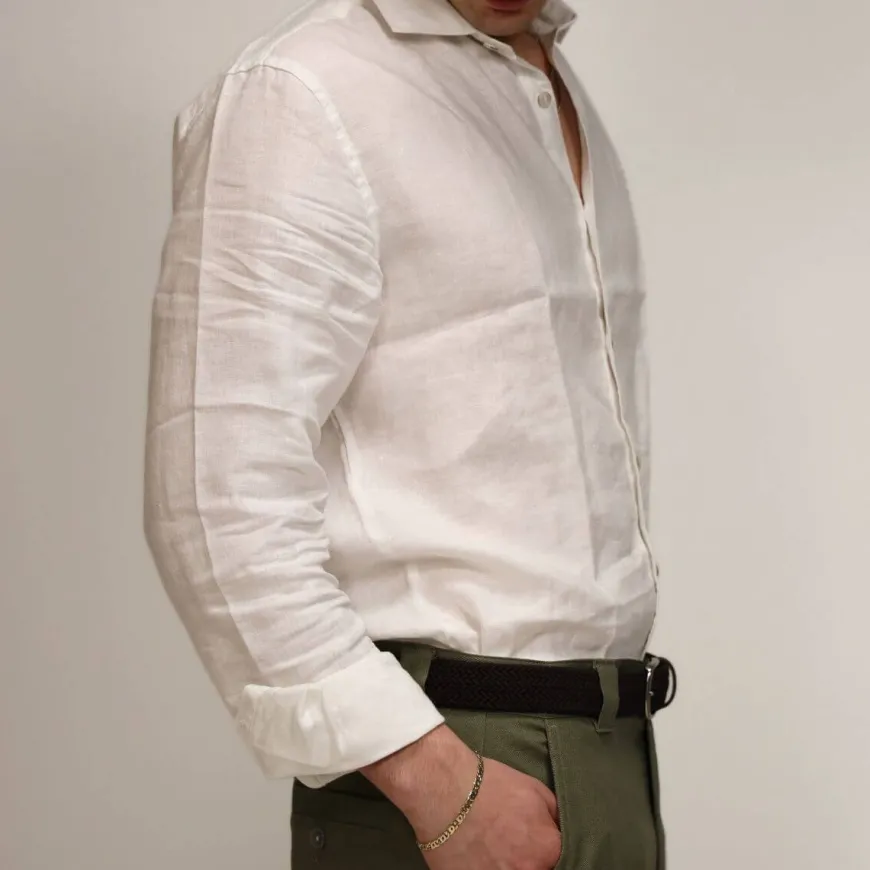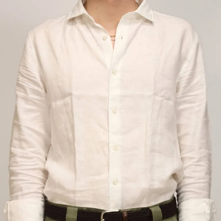Camicia da uomo di DSTREZZED realizzata in fresco lino con chiusura con bottoni.