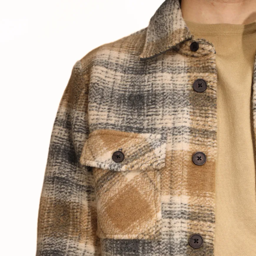 Giubbotto da uomo di MARKUP, realizzato in lana a quadri beige. Chiusura con bottoni. Interno in poliestere grigio.