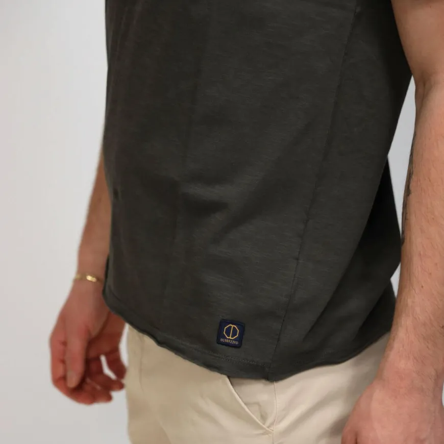 T-shirt da uomo di DSTREZZED realizzata in cotone verde militare con bordi a taglio vivo.