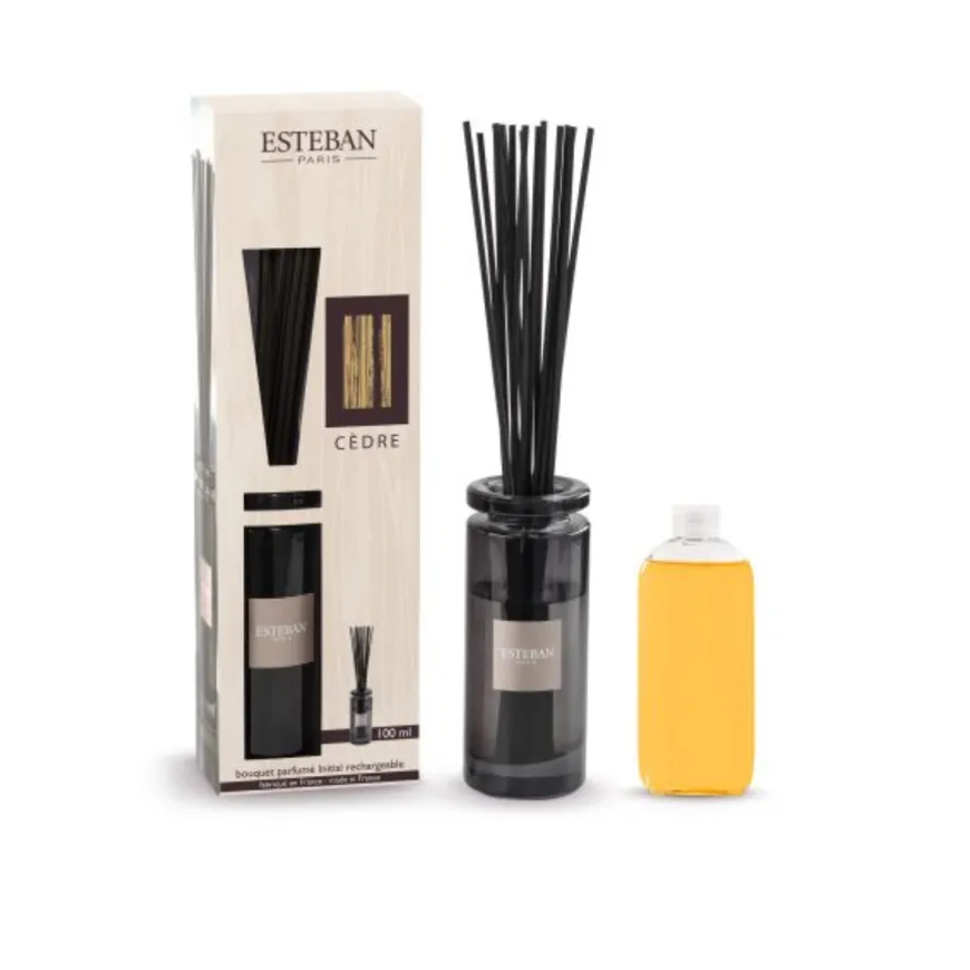 Profumo boschivo e fresco. Cèdre è una fuga verso contrade in cui la natura respira, selvatica e maestosa. Estéban rende omaggio a questo simbolo forte e maestoso. Formulato a base di essenze naturali, Cèdre è un nuovo modo di vivere la casa, in armonia con i grandi spazi e con te stesso.