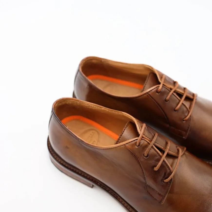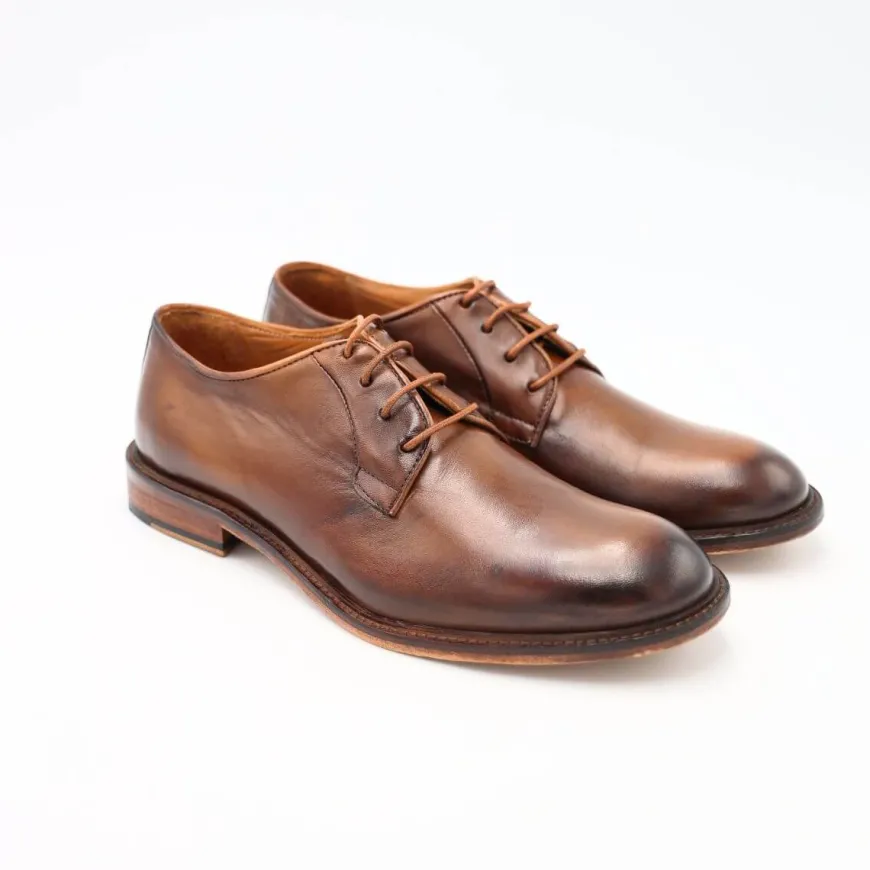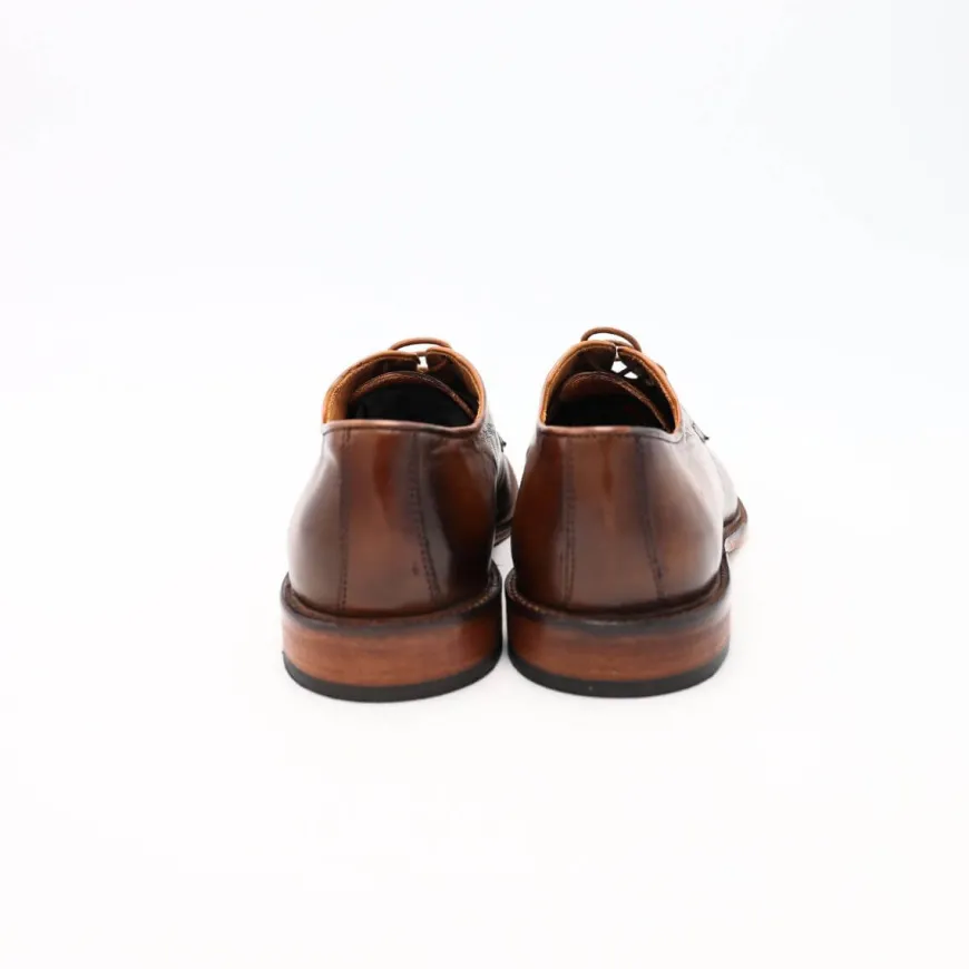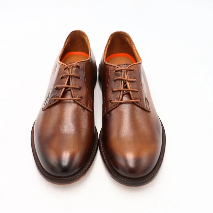 Scarpa, elegante, stringata da uomo di FRATELLI RENNELLA. Tomaia realizzata in pelle liscia color cuoio, con cuciture a vista sul bordo. Interno foderato e sottopiede in pelle. Suola in cuoio. Chiusura con laccio fino.