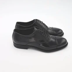 Scarpa stringata da uomo firmata FRANCO FEDELE. Realizzata in pelle nera spazzolata con un elegante puntale, offre comfort grazie alla fodera interna e al sottopiede in pelle non removibile. La suola in gomma garantisce una camminata stabile e sicura. Esclusiva e raffinata, per una calzatura senza pari.