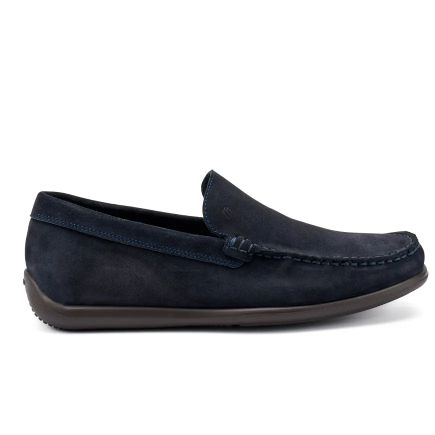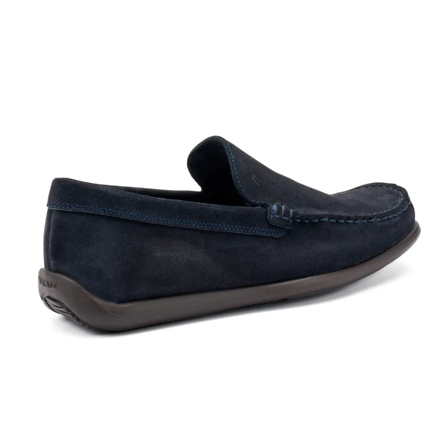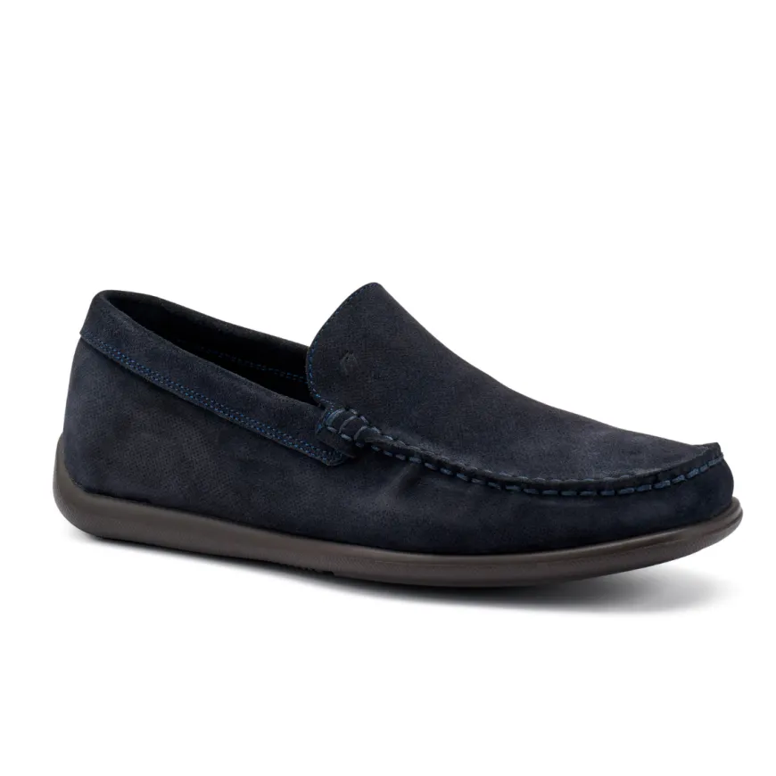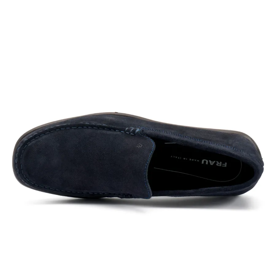 Mocassino slip-on da uomo di FRAU. Tomaia realizzata in pelle scamosciata sfoderata e punzonata, traspirabile. Sottopiede in pelle e suola ultraleggera in gomma XL®.