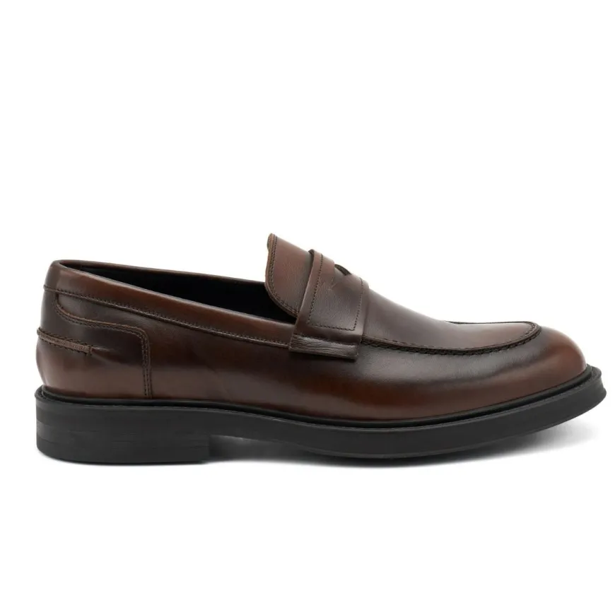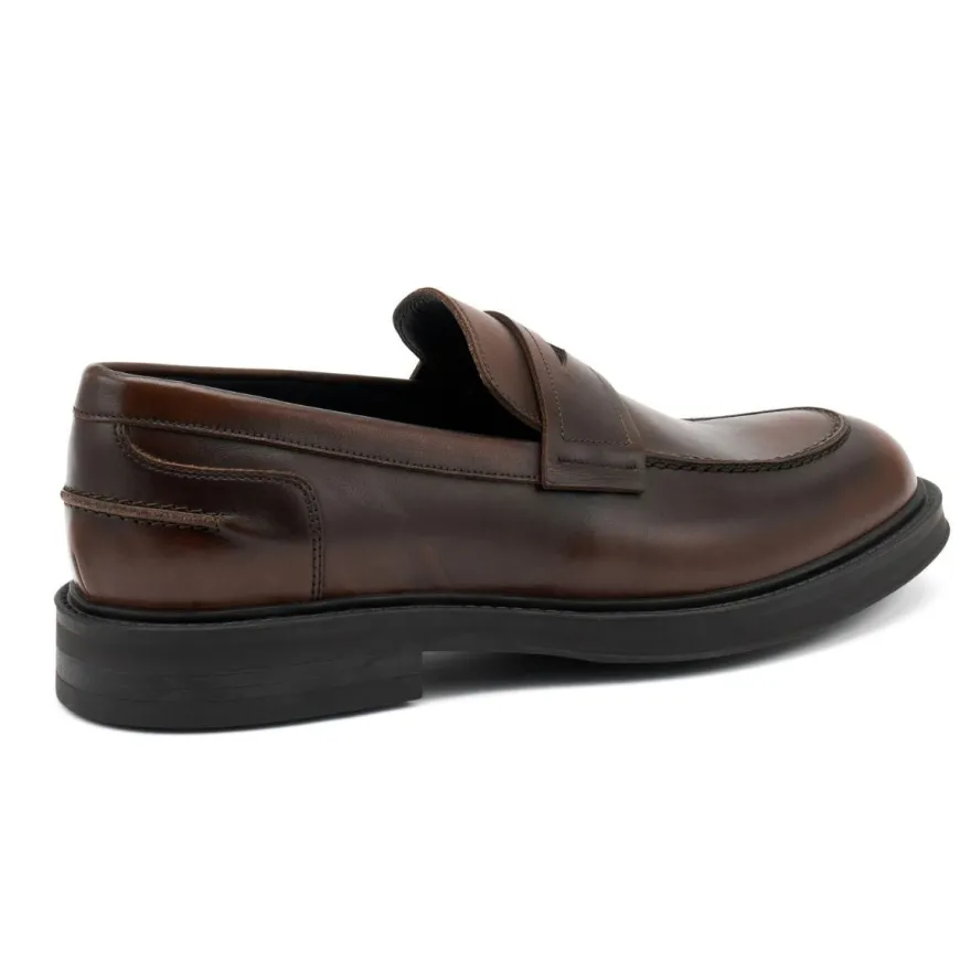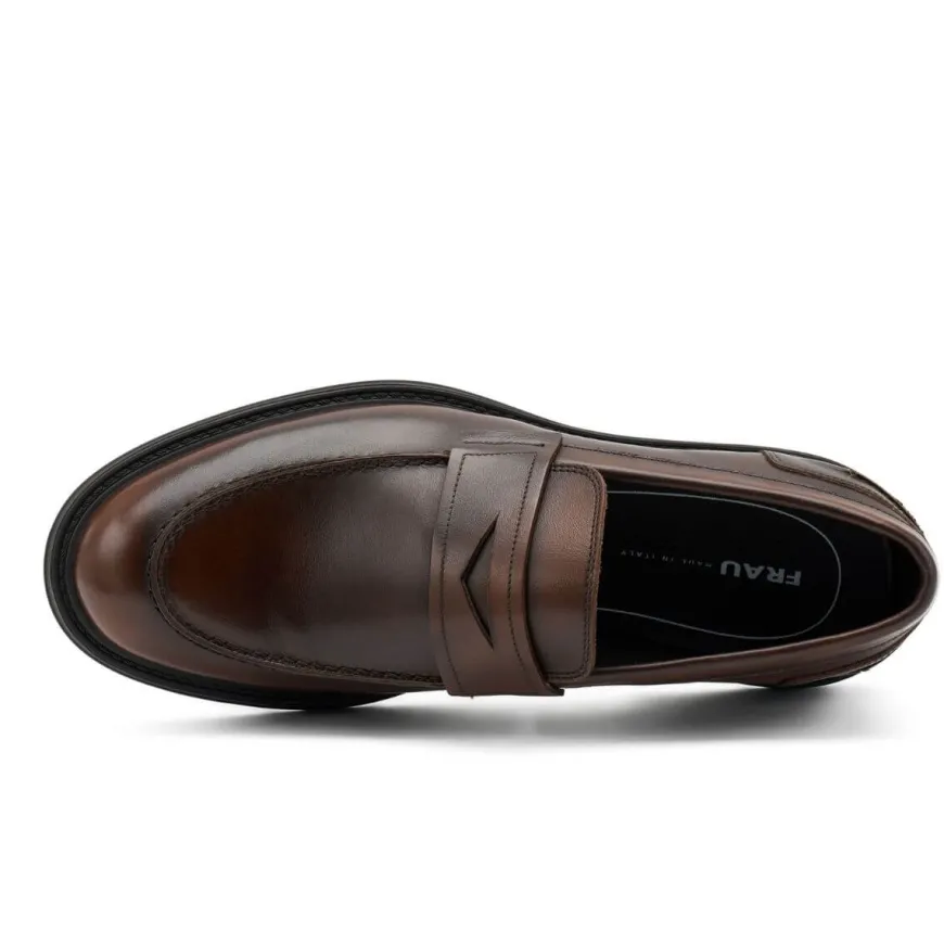 Mocassino da uomo di FRAU. Tomaia realizzata in morbidissima pelle marrone con mascherina. Interno e sottopiede foderato in pelle e tessuto, estraibile. Suola in gomma Gommus.