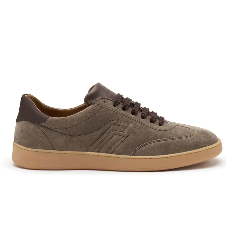 Sneakers da uomo di FRAU. Tomaia realizzata in morbidissimo camoscio grigio con logo punzonato per favorire la traspirabilità. Interno e sottopiede foderato in tessuto e pelle, estraibile. Suola in gomma.
