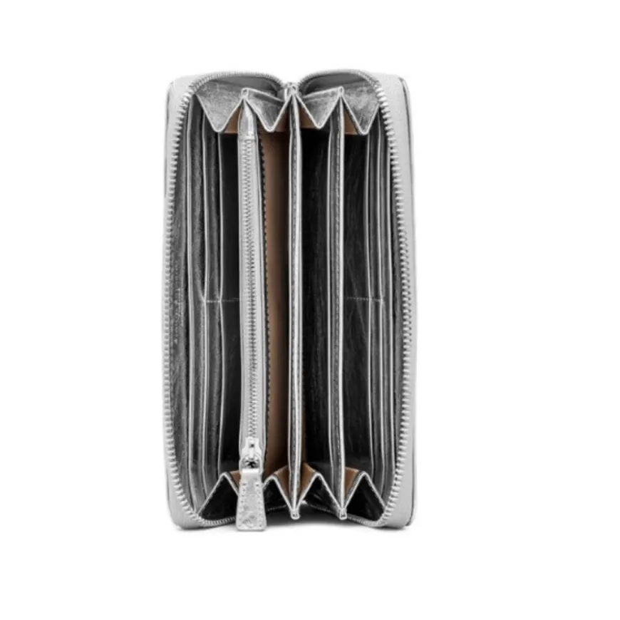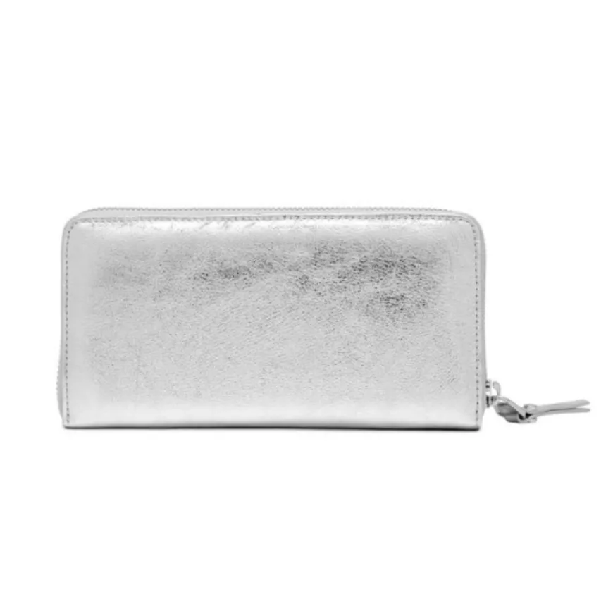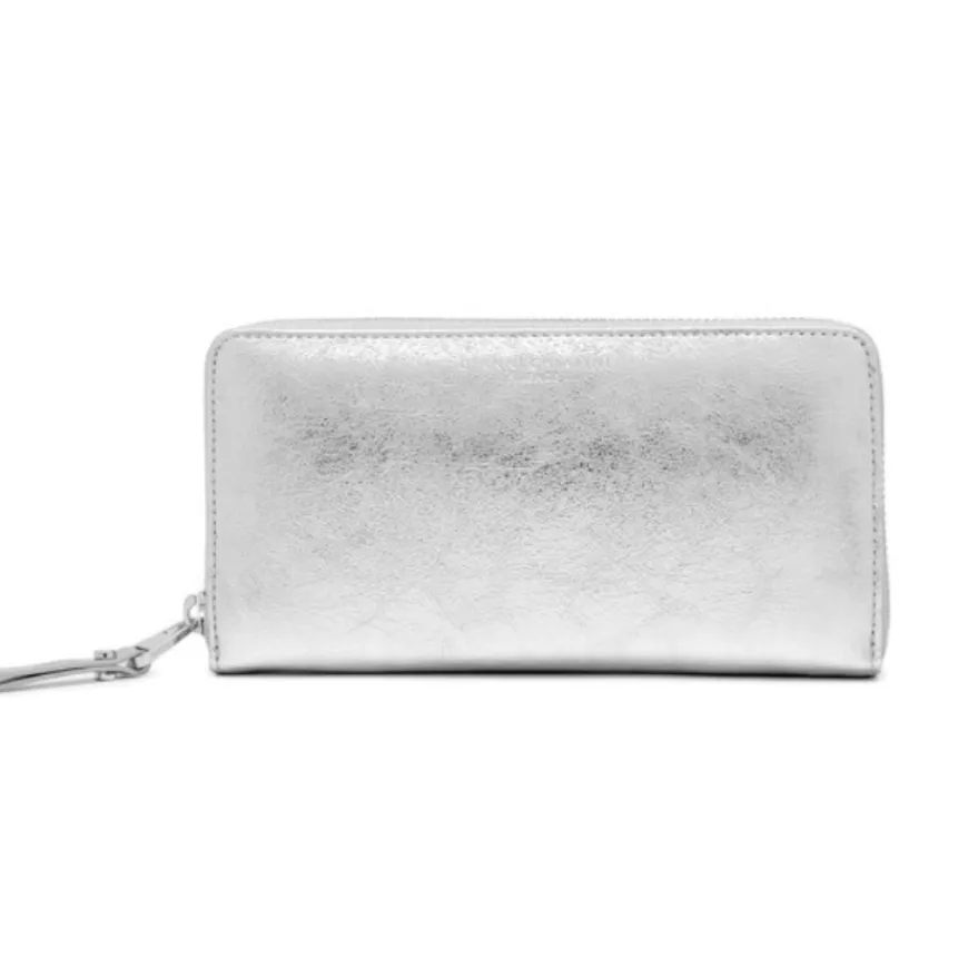 Portafoglio di Gianni Chiarini Firenze in pelle laminata, dall’effetto luminoso e dal look vintage e washed. Dotato di apertura con zip. All’interno svariati scompartimenti. Non mancano tasche portatessere e una zip sul retro.