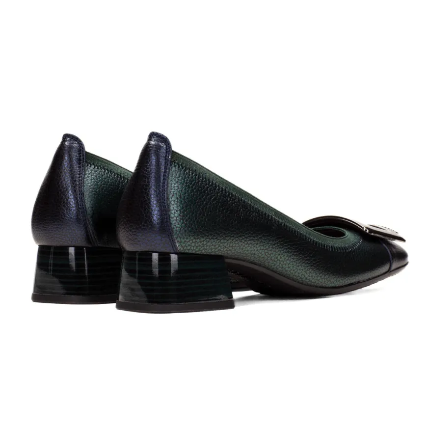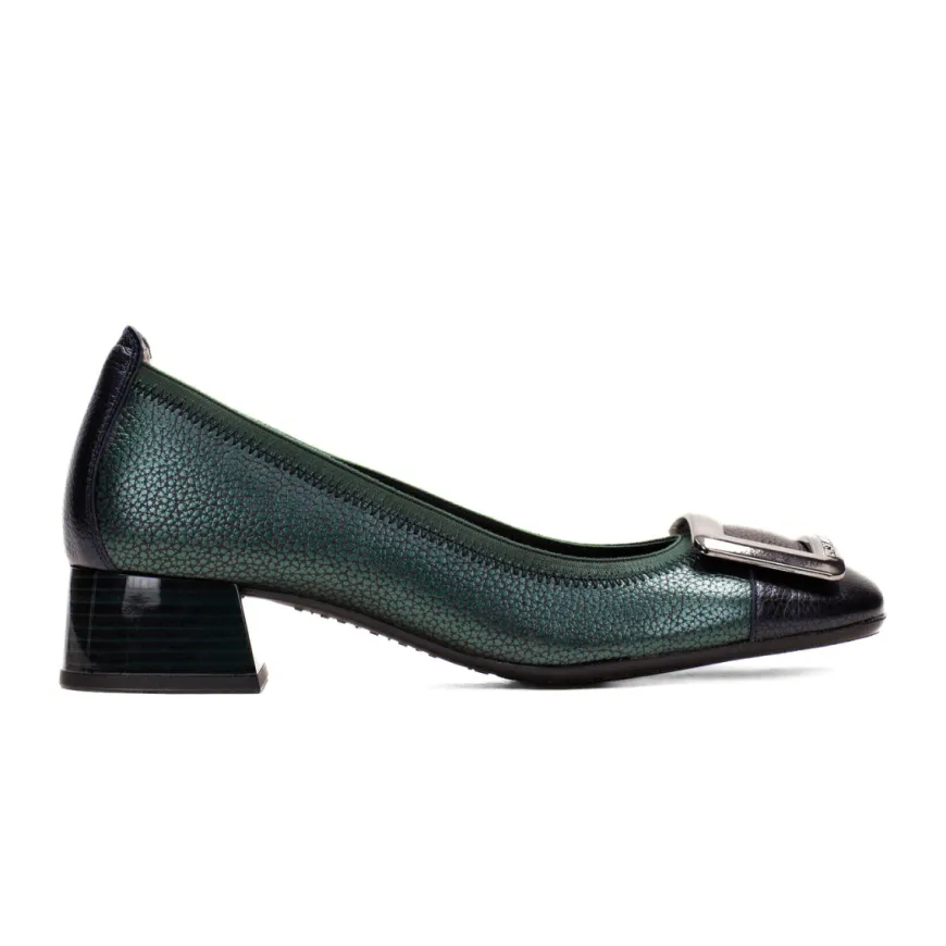 Aggiungi un tocco nuovo ai tuoi outfit con la ballerina di HISPANITAS. Realizzata con un tomaia in pelle bottalata multucolore e un puntale argento con un decoro unico. Con sottopiede in triflow con gel system che da comfort e assorbe gli urti e una suola in gomma per massima stabilità, e tacco liscio nero (altezza: 3cm).