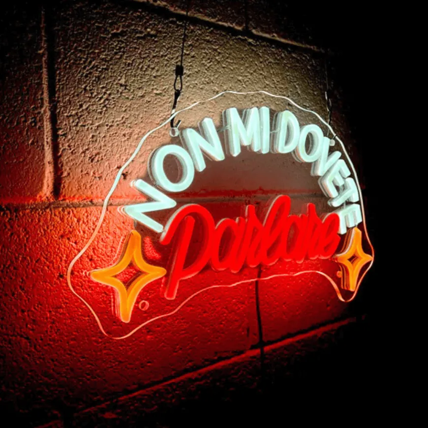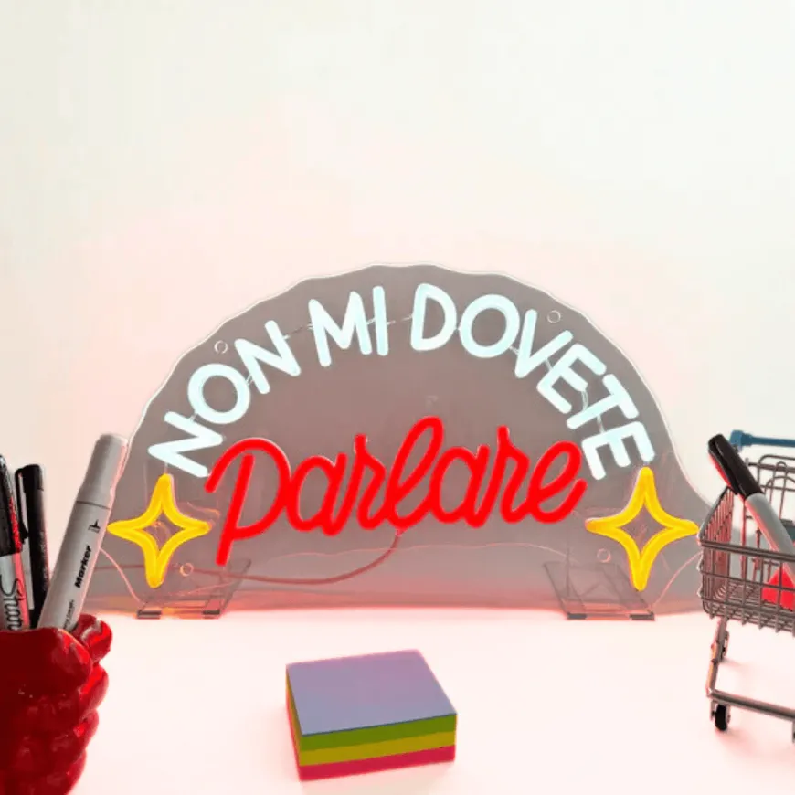 Scritta led che recita “NON MI DOVETE PARLARE“.