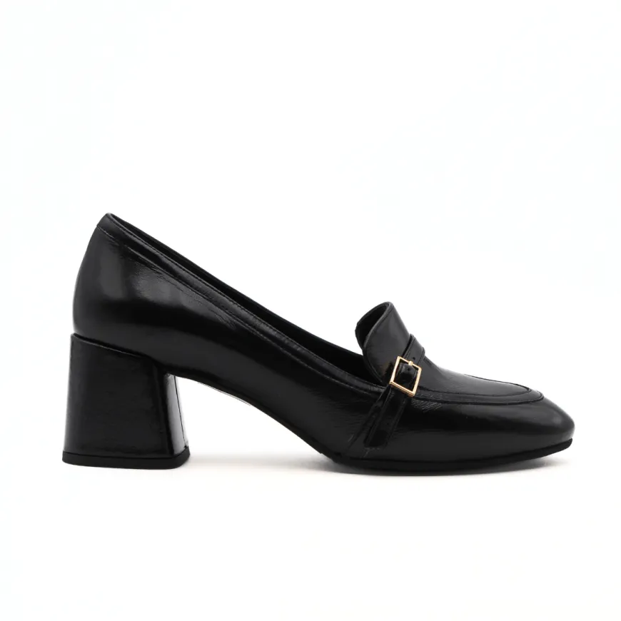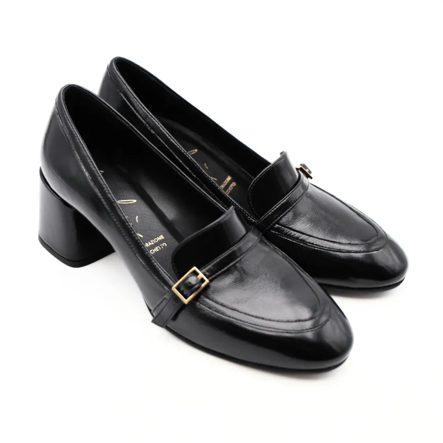 Mocassino da donna di MALÙ realizzato in naplak nero con fibietta regolabile. Interno e sottopiede, non estraibile, in pelle. Suola in gomma con lavorazione a sacchetto per un maggiore confort.