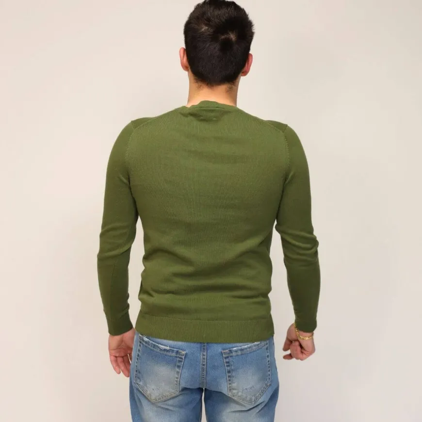 Maglione leggero da uomo di MARKUP color verde militare in cotone. Vestibilità regolare. Maglione molto morbido.