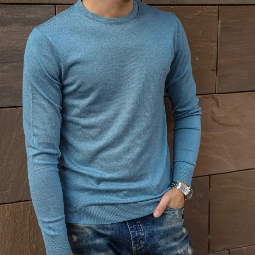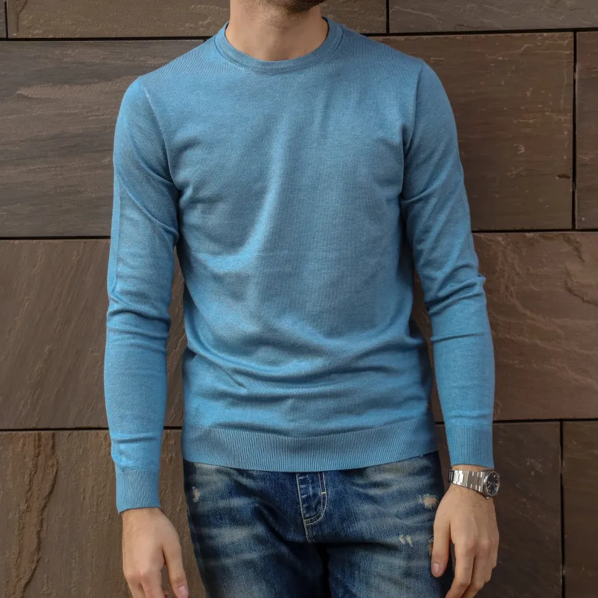 Maglione da uomo di MARKUP in viscosa carta da zuccero. Giro collo. Il modello indossa una L.