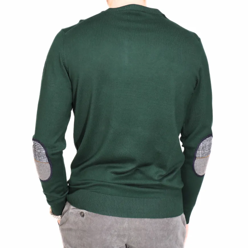 Maglione da uomo di MARKUP in viscosa verde foresta con toppe sul retro della manica. Giro collo.