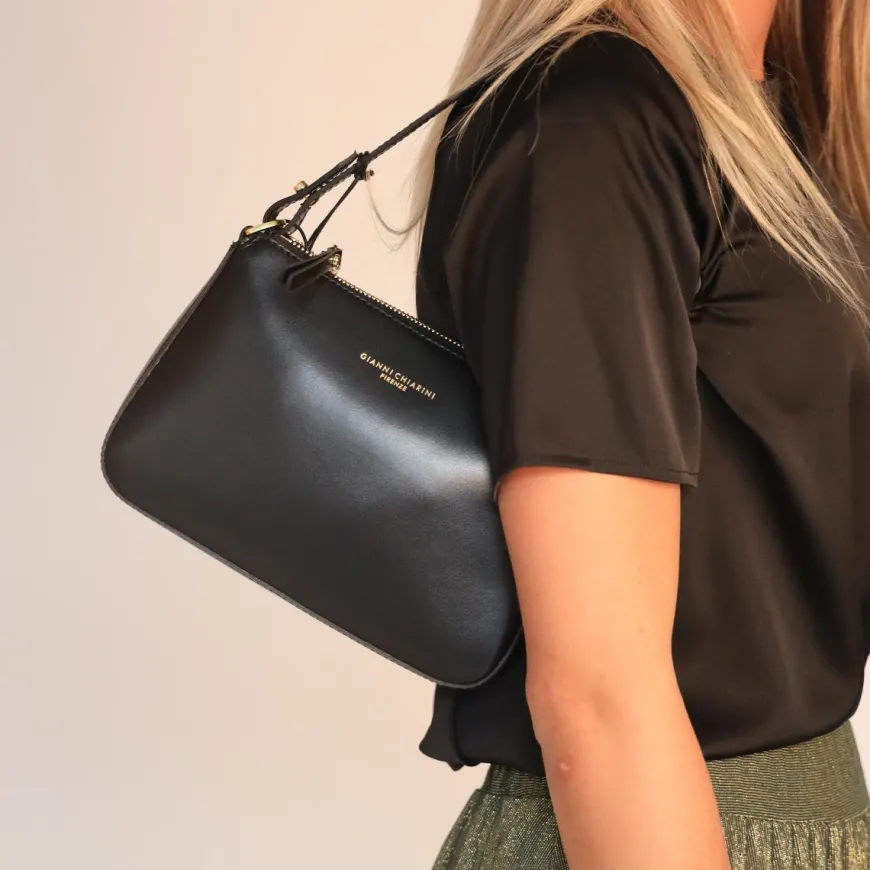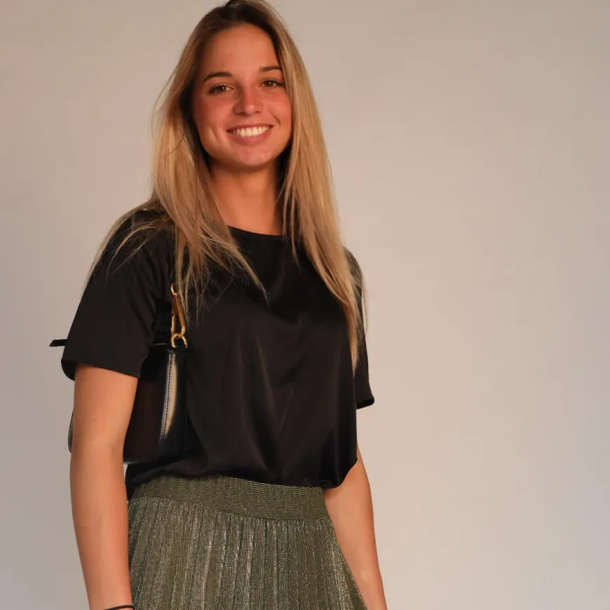 Maglia, da donna, di Markup. Realizzata in effetto raso nero a manica corta.