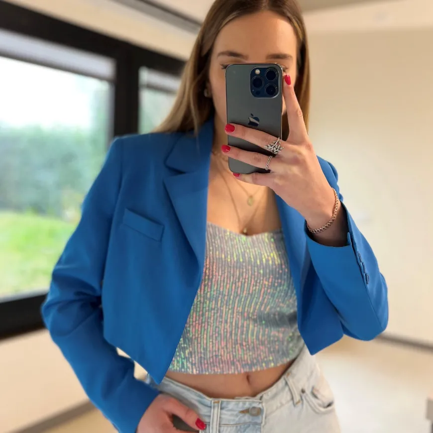 Giacca cropped, da donna, di Markup. Realizzata in poliestere color azzurro.