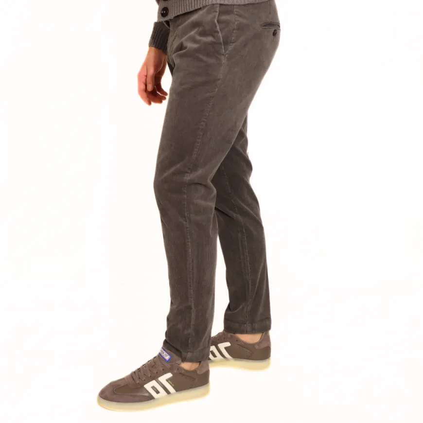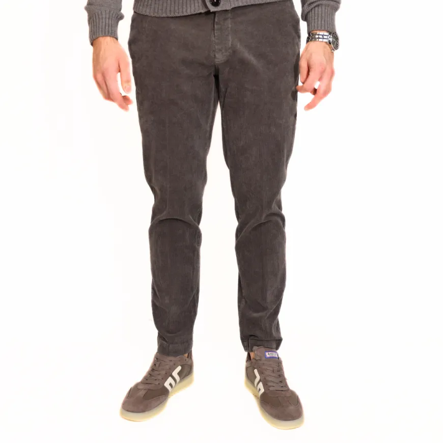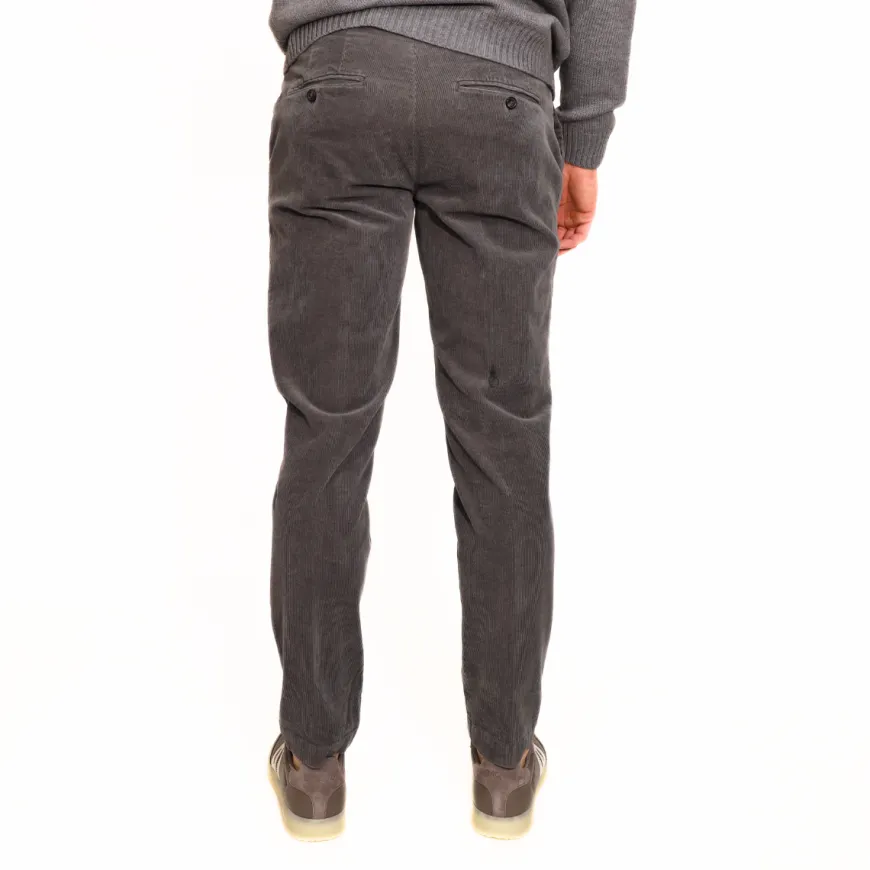 Pantaloni modello chinos da uomo di MARKUP realizzati in cotone grigio a costine. Presentano una chiusura con bottone e zip e tasche frontali e posteriori. Vestibilità regolare.