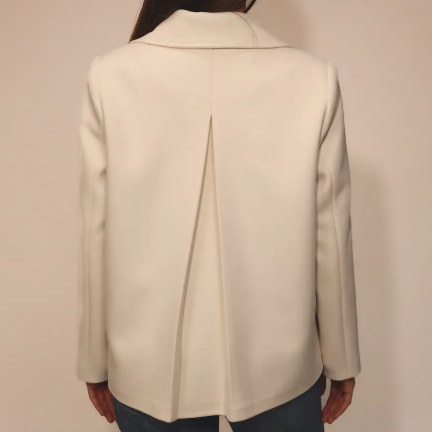 Cappotto da donna in poliestere color panna di MARYLEY. Chiusura con bottonI. La modella indossa una M.
