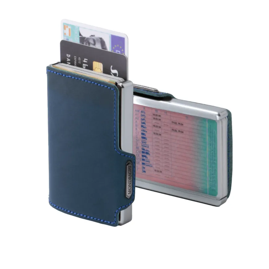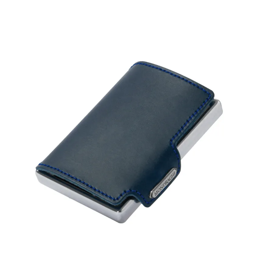 Portafoglio e porta tessere di MONDRAGHI realizzato in pelle primo fiore con cucitura perimetrale e scocca lega leggera satin silver. Pratico sistema per contenere fino a 9 tessere, angoli arrotondati per non rovinare i tessuti, posizione delle carte e delle tessere idonee a proteggere la banda magnetica delle carte. Protezione RFID e NFC.