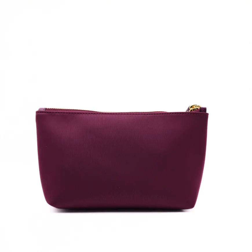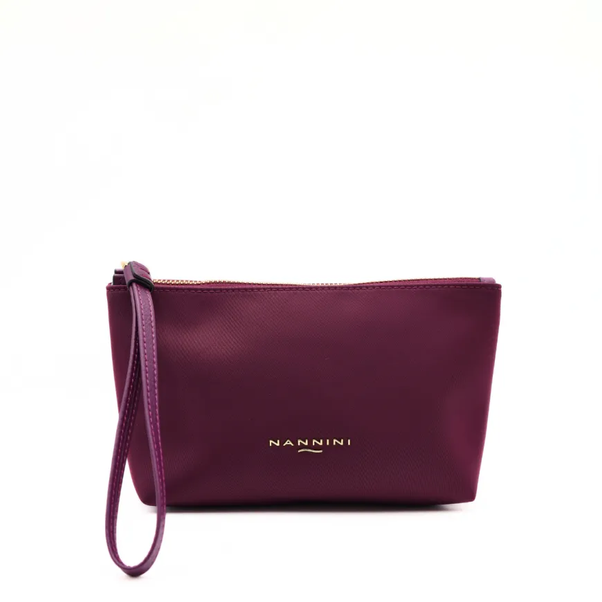 Bustina portatutto di NANNINI realizzata in tessuto viola. Unico comparto interno. Chiusura con zip.