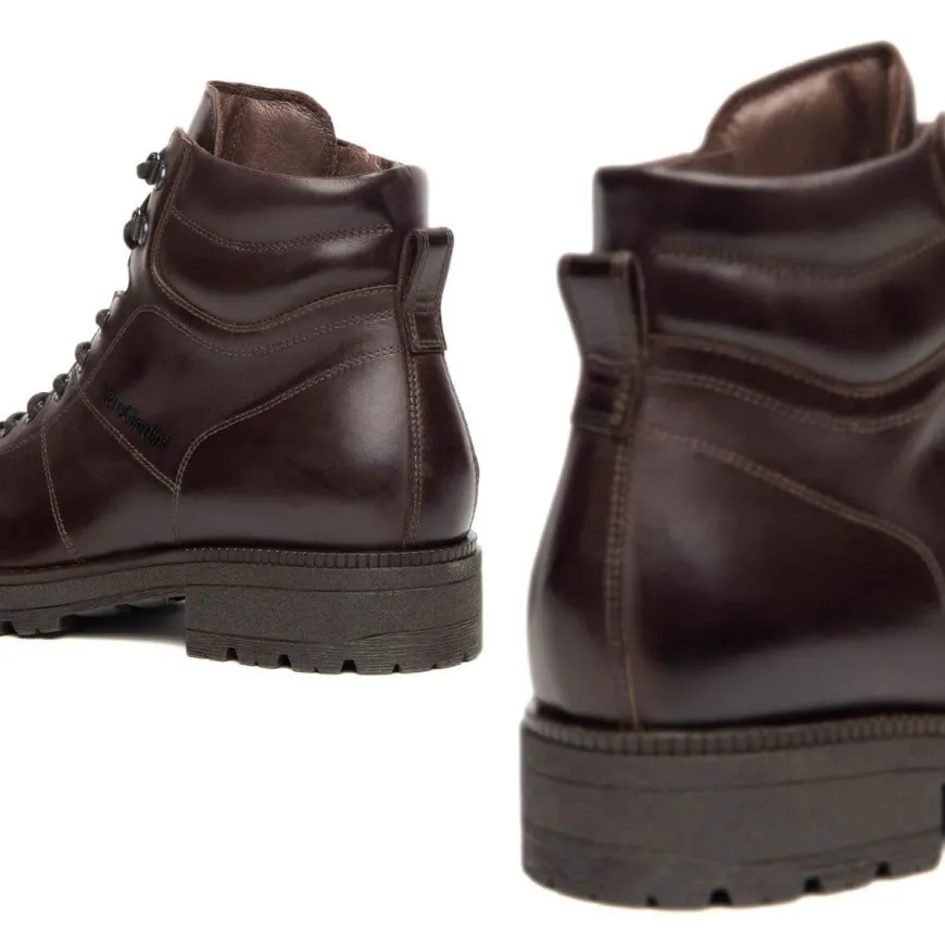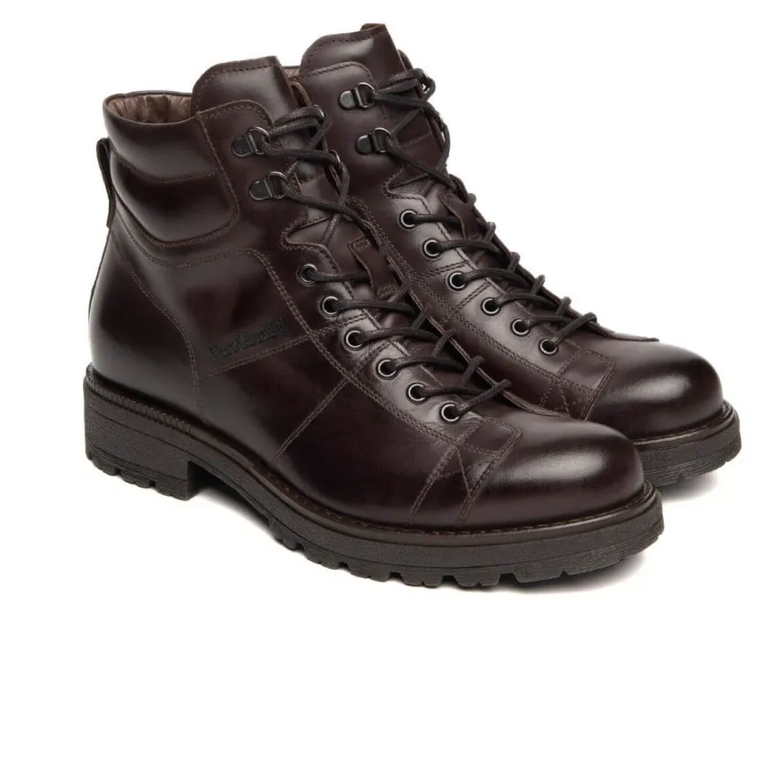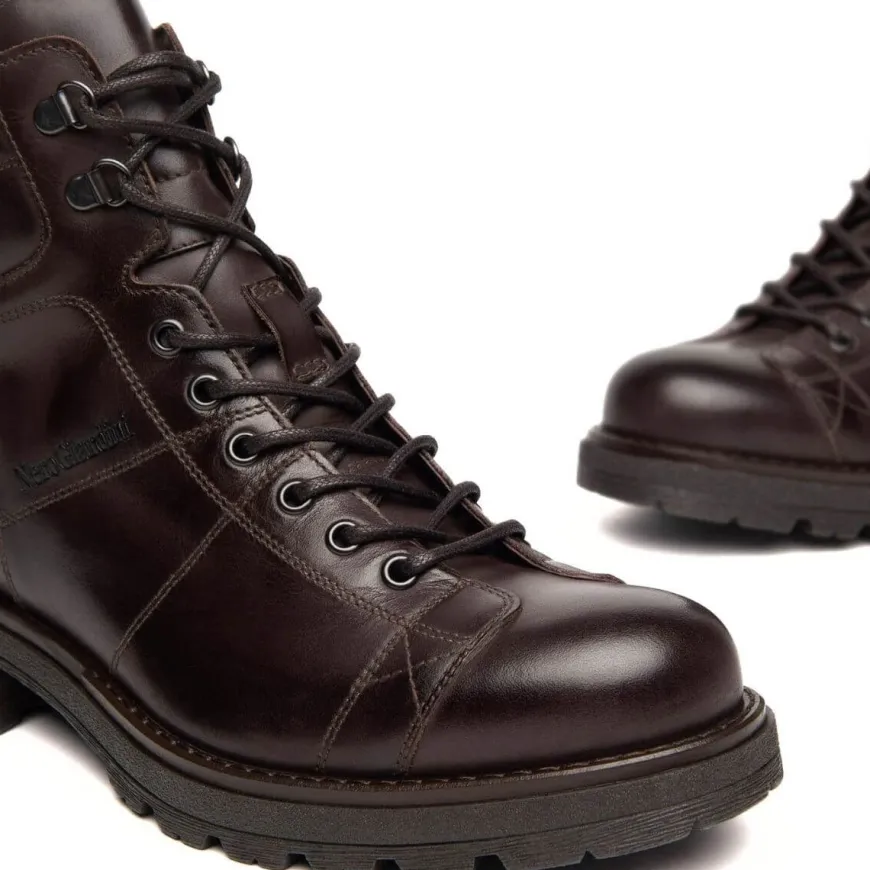 Anfibio di Nero Giardini, personalità e stile unico. Realizzato in pelle color marrone con gancetti e chiusura con zip unilaterale. Interno e sottopiede, estraibile, in pelle. Suola in gomma carrarmato.