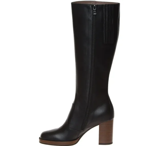 Stivale da donna di NERO GIARDINI in pelle nera, con cuciture a vista e logo unilaterale. Interno foderato in pelle con morbido sottopiede non estraibile. Chiusura con zip laterale. Suola in gomma.