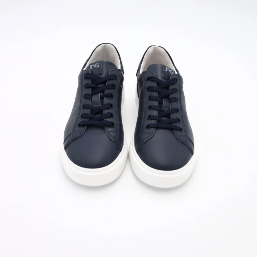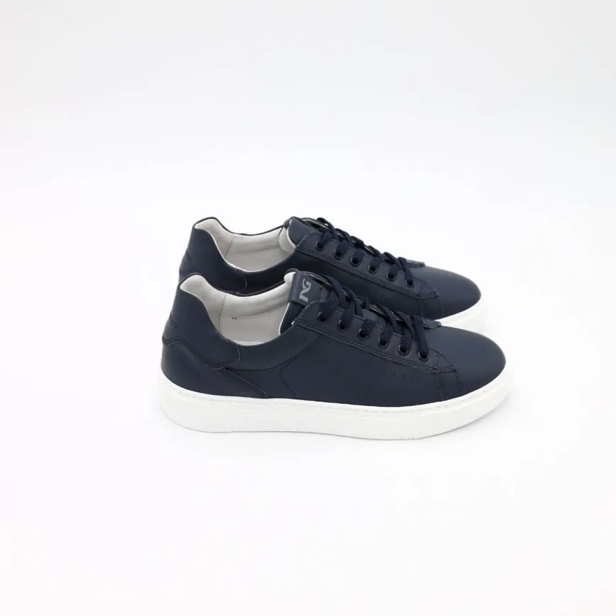 Cammina con stile ed eleganza indossando le sneaker casual di pelle blu di NERO GIARDINI. La fodera interna in pelle e il sottopiede sagomato garantiscono comfort e praticità. Con una suola in gomma, unisce stile e comodità.