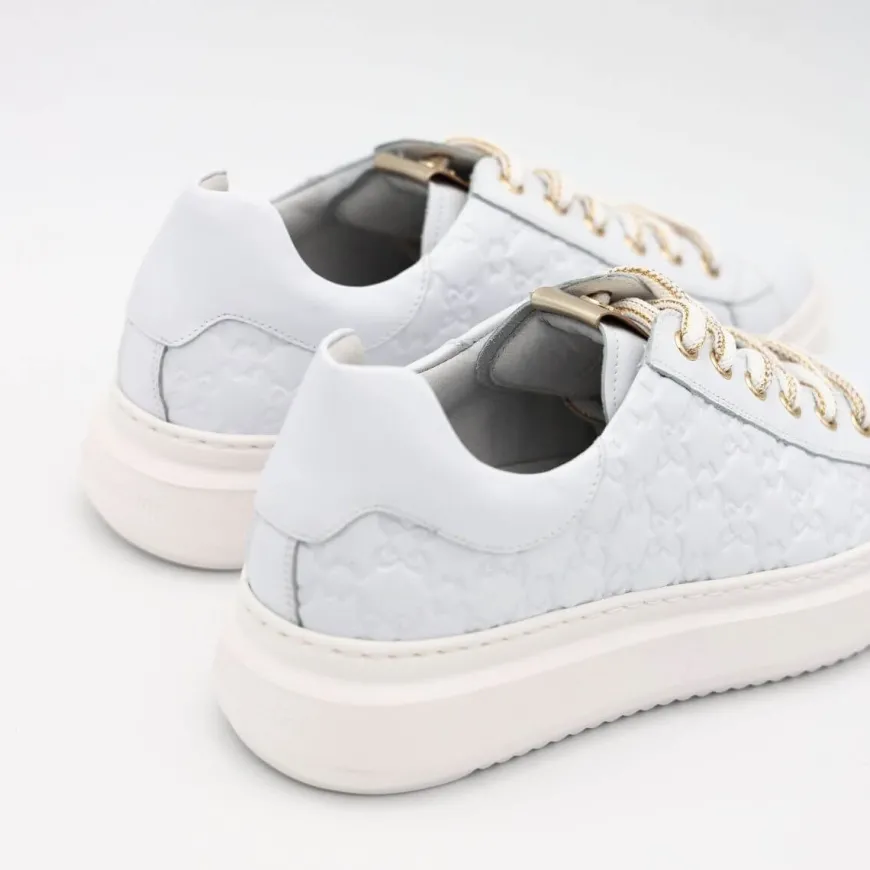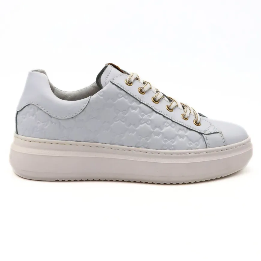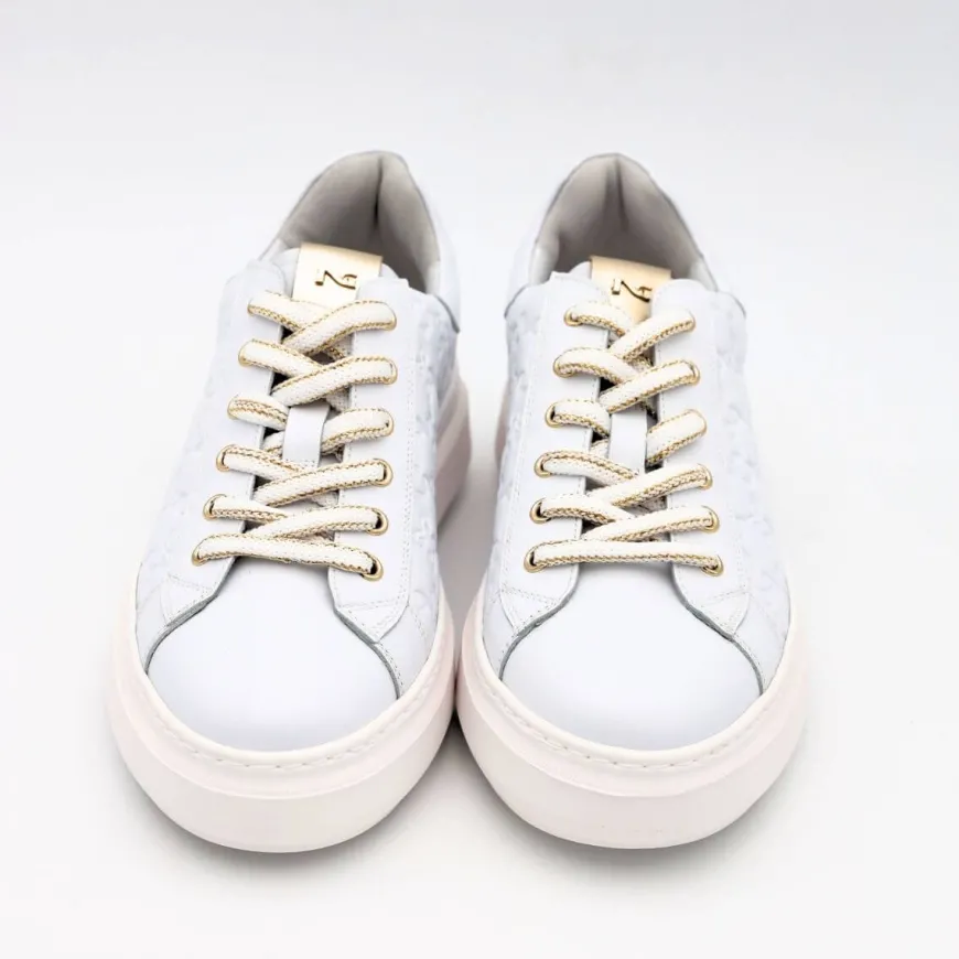 Aggiungi un tocco di eleganza al tuo look con le sneakers da donna di Nero Giardini. Realizzate in pelle bianca decorata con logo, queste sneakers offrono un comfort supremo grazie all’interno e al sottopiede in pelle estraibile. La suola in gomma platform di 4cm è perfetta per camminare con stile.