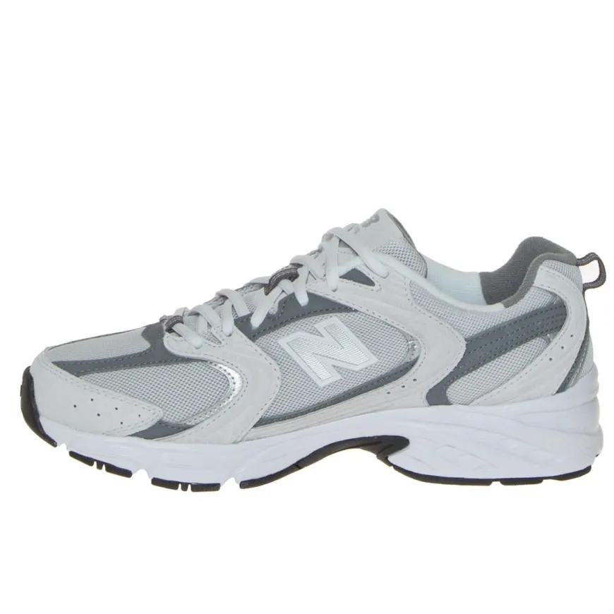 Sportiva sneaker uomo di NEW BALANCE, modello 530, in tessuto tecnico forato bianco con inserti in pelle laminata, con N cucita bilateramente. Interno e sottopiede, estraibile, in tessuto. Chiusura con lacci. Suola in gomma.