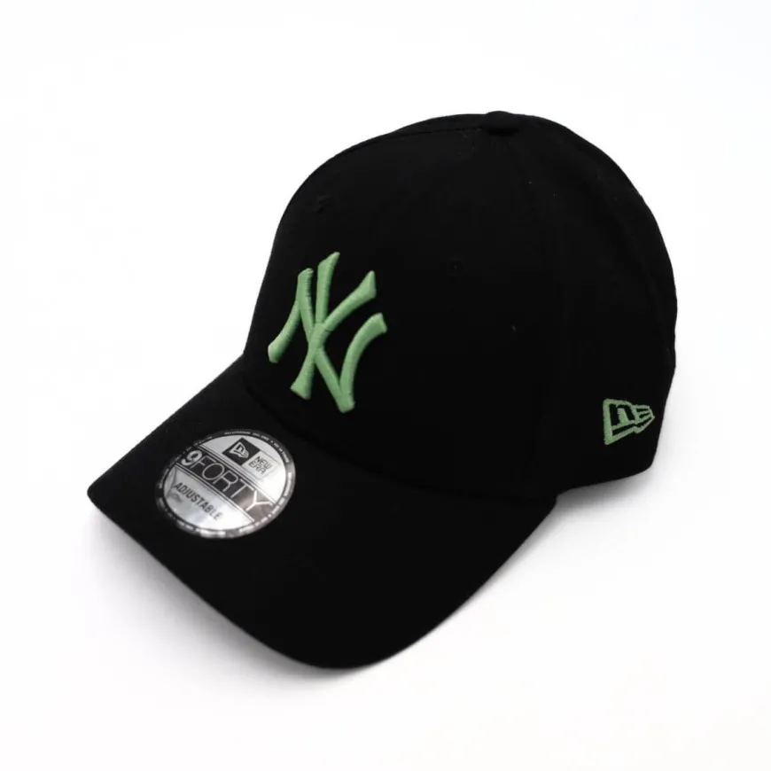 Cappellino, unisex, di New Era. Realizzato in cotone color nero con logo ricamato verde. Possibilità di regolarne la larghezza.