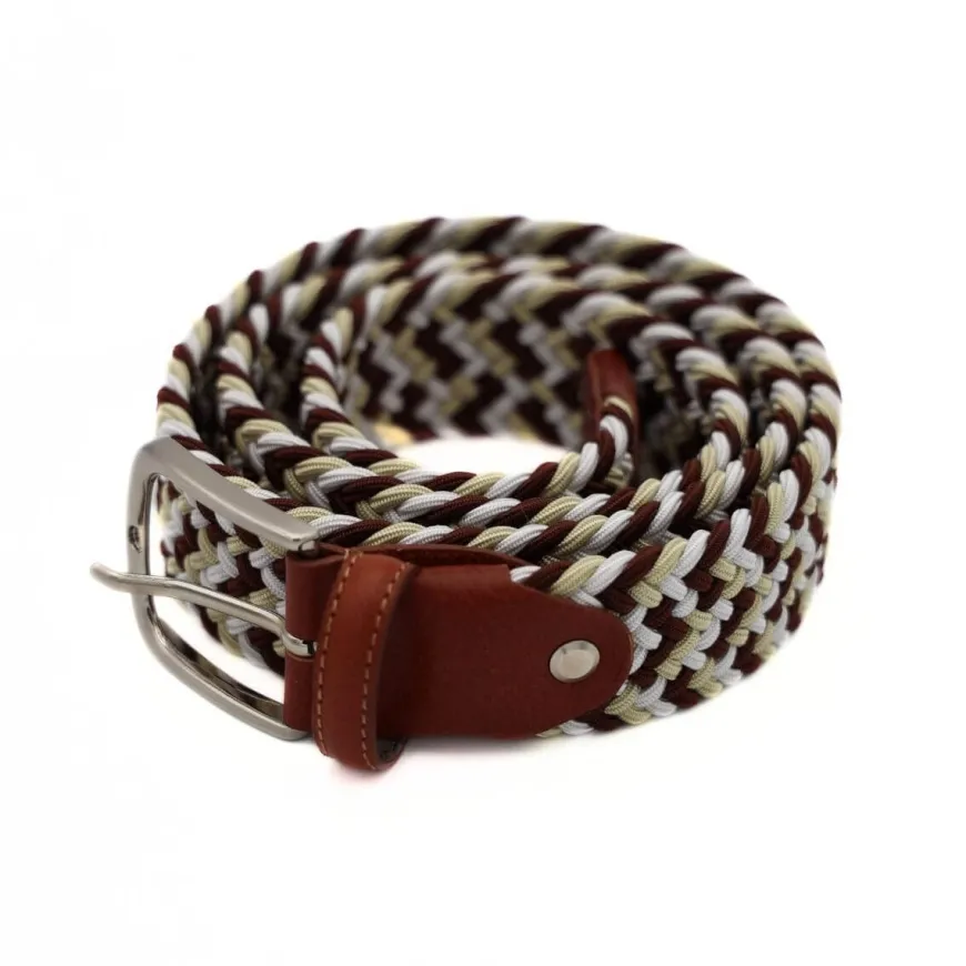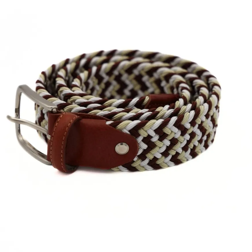 Cintura da uomo di PRATENICE in tessuto elastico intrecciato multicolor: fango, beige, bianco, marrone.