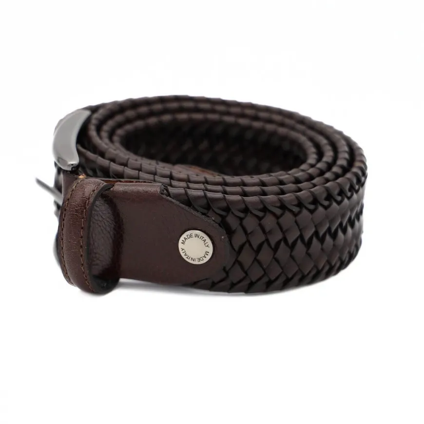 Cintura da uomo di PRATENICE realizzata in morbida pelle testa di moro intrecciata a spina di pesce.