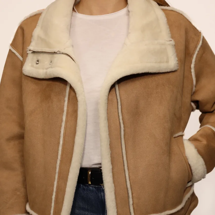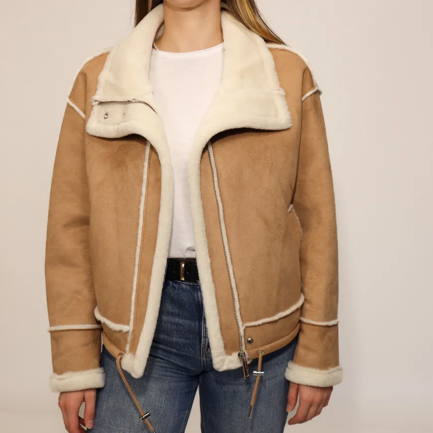 Giubbetto da donna di RINO&PELLE, realizzato in poliestere marrone con cappuccio, interno morbido e peloso. Tasche frontali e chiusura con zip.