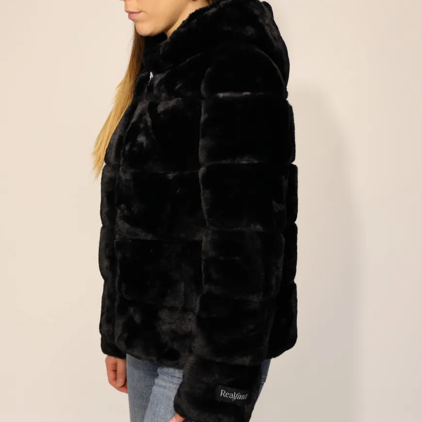 Pelliccia, da donna di RINO&PELLE. Realizzata in poliestere nero. Chiusura con zip.